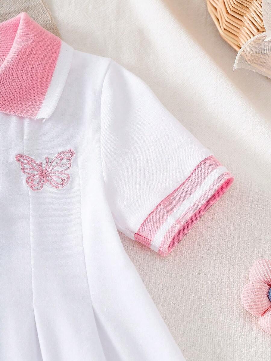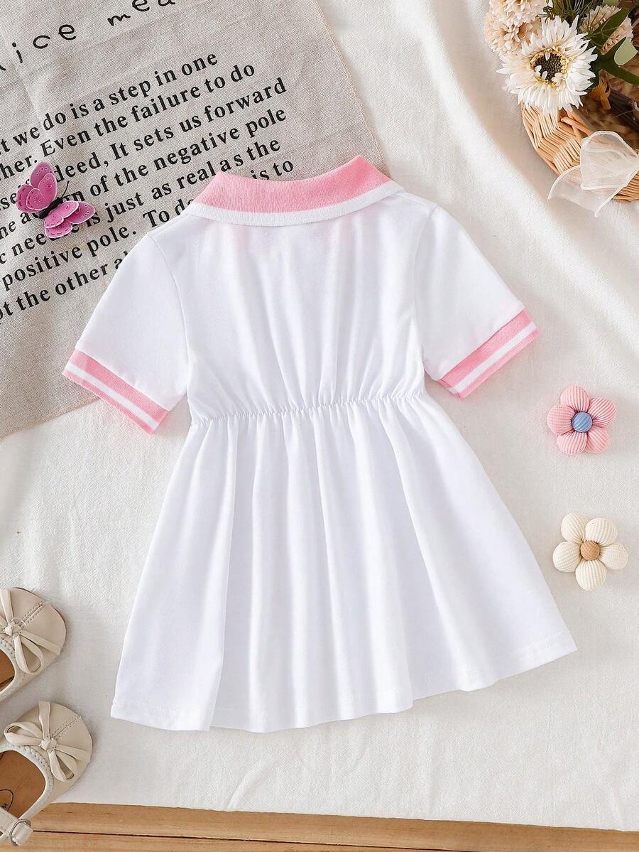 Vestido casual blanco con cuello y puños acanalados para niñas