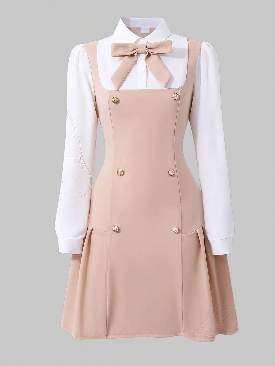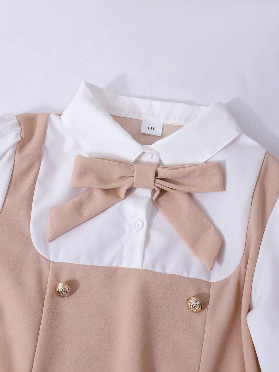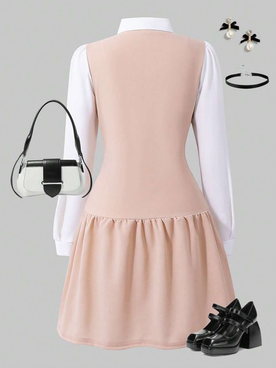Vestido casual de estilo preparatorio dulce con cuello de lazo