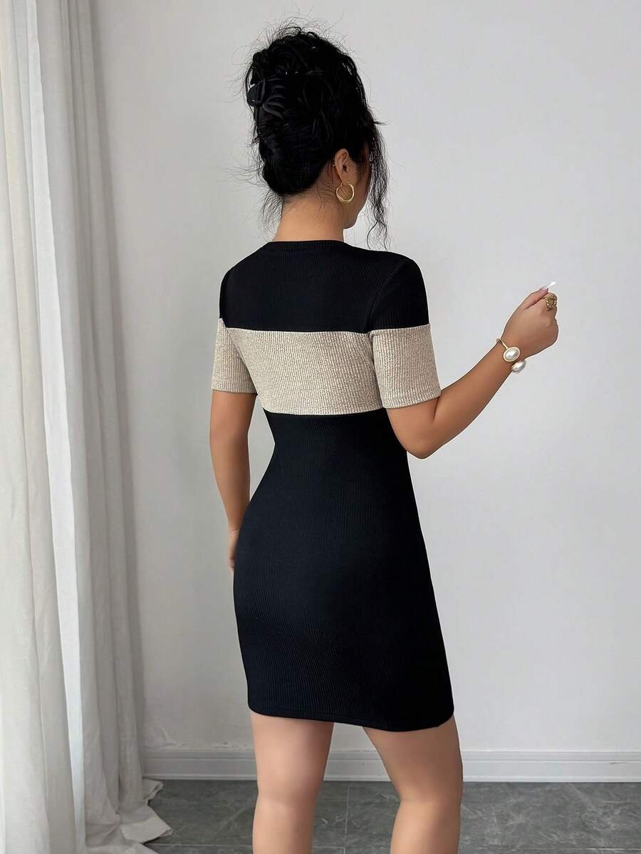 Vestido casual de mujer con diseño de patchwork acanalado