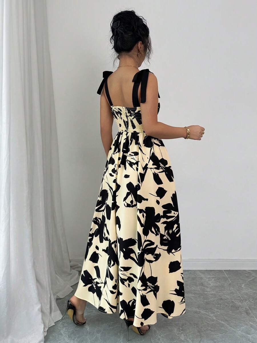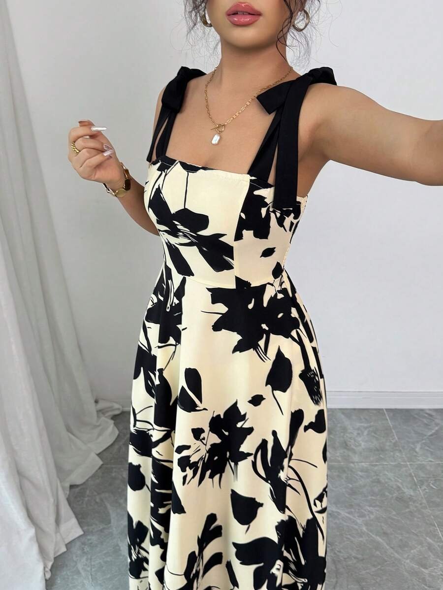 Vestido casual de vacaciones con diseño acampanado y cintura ceñida