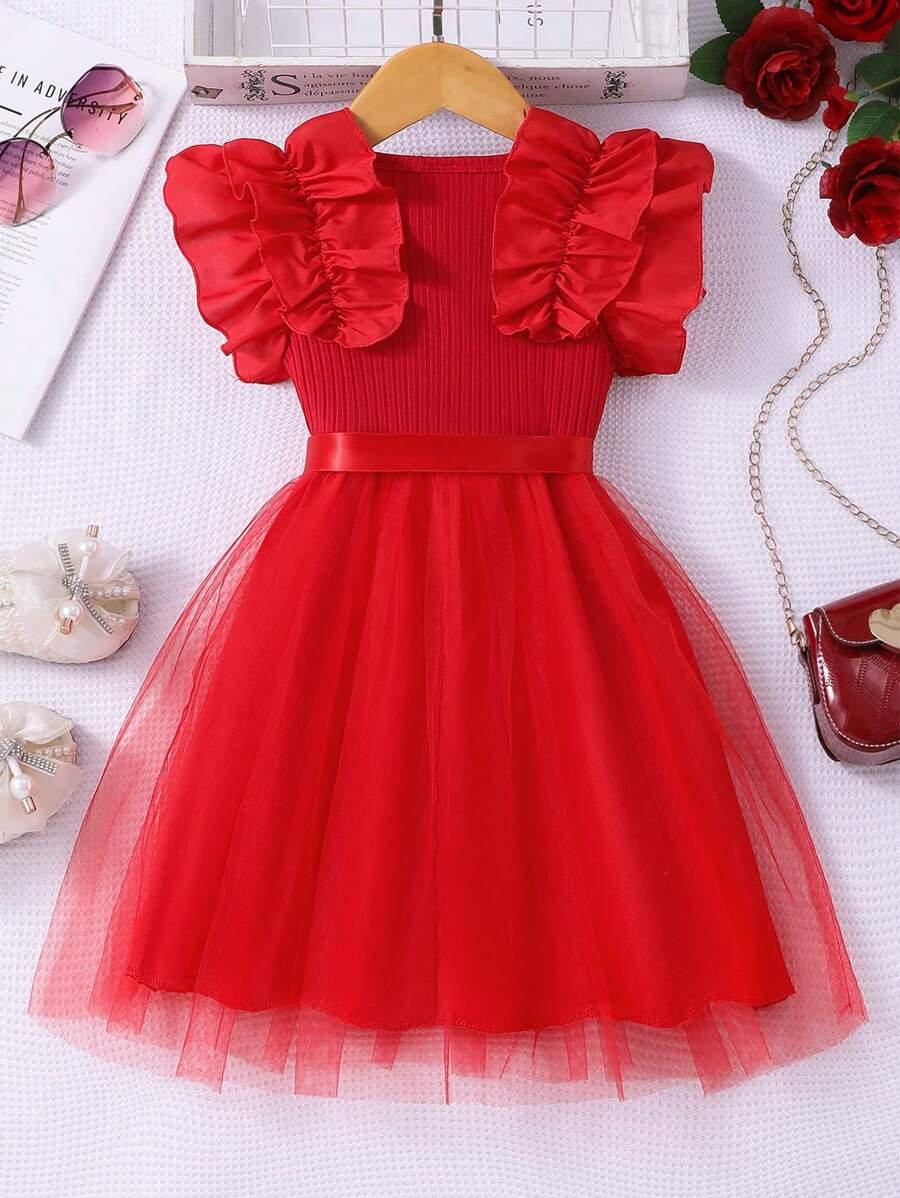 Vestido casual de verano para niña con mangas acampanadas con volantes