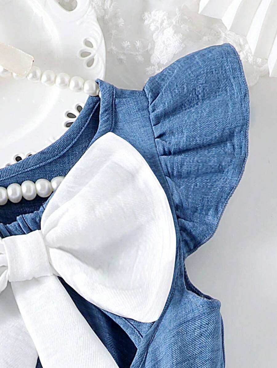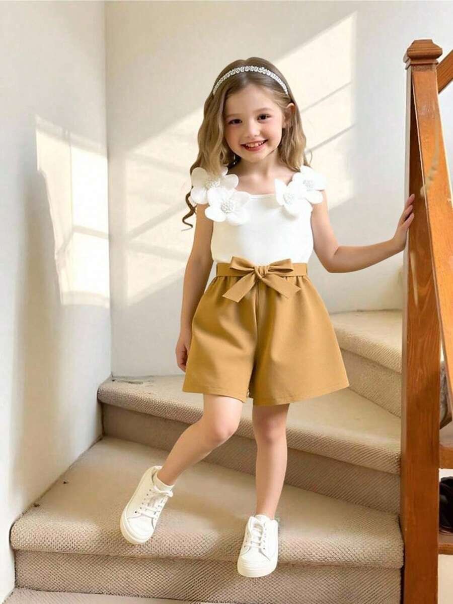 Niñas Shorts en mezclilla con estampado de pañuelo con paisley de color combinado bajo crudo
