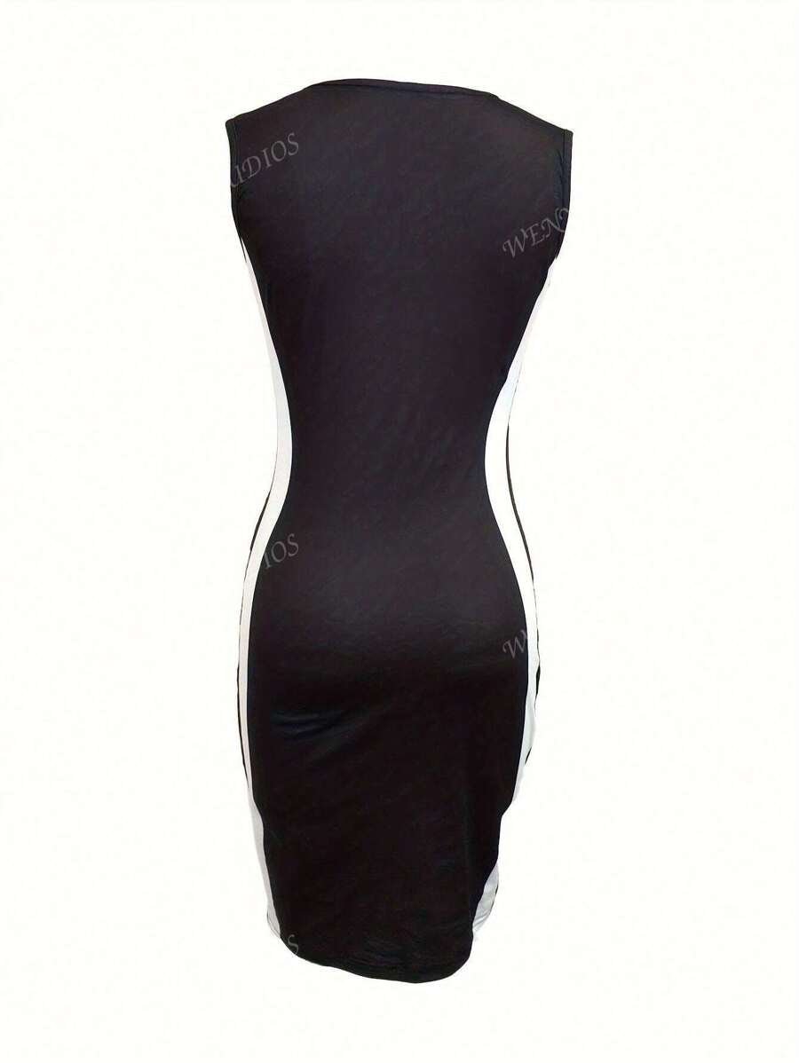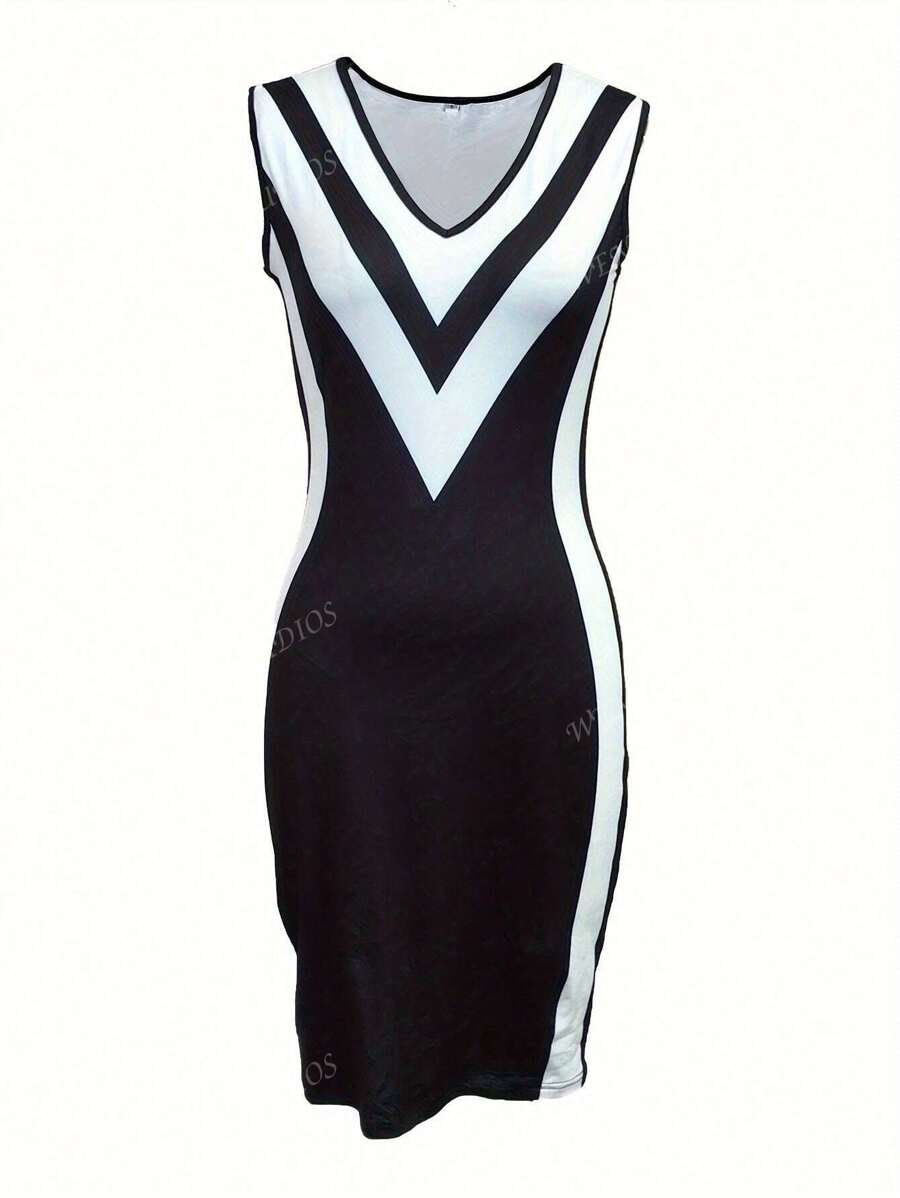 Vestido casual midi entallado al talle con cuello en V