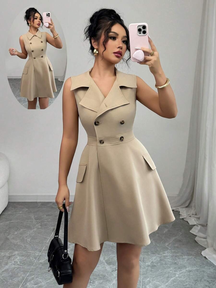 Vestido casual unicolor de corte delgado y sin mangas