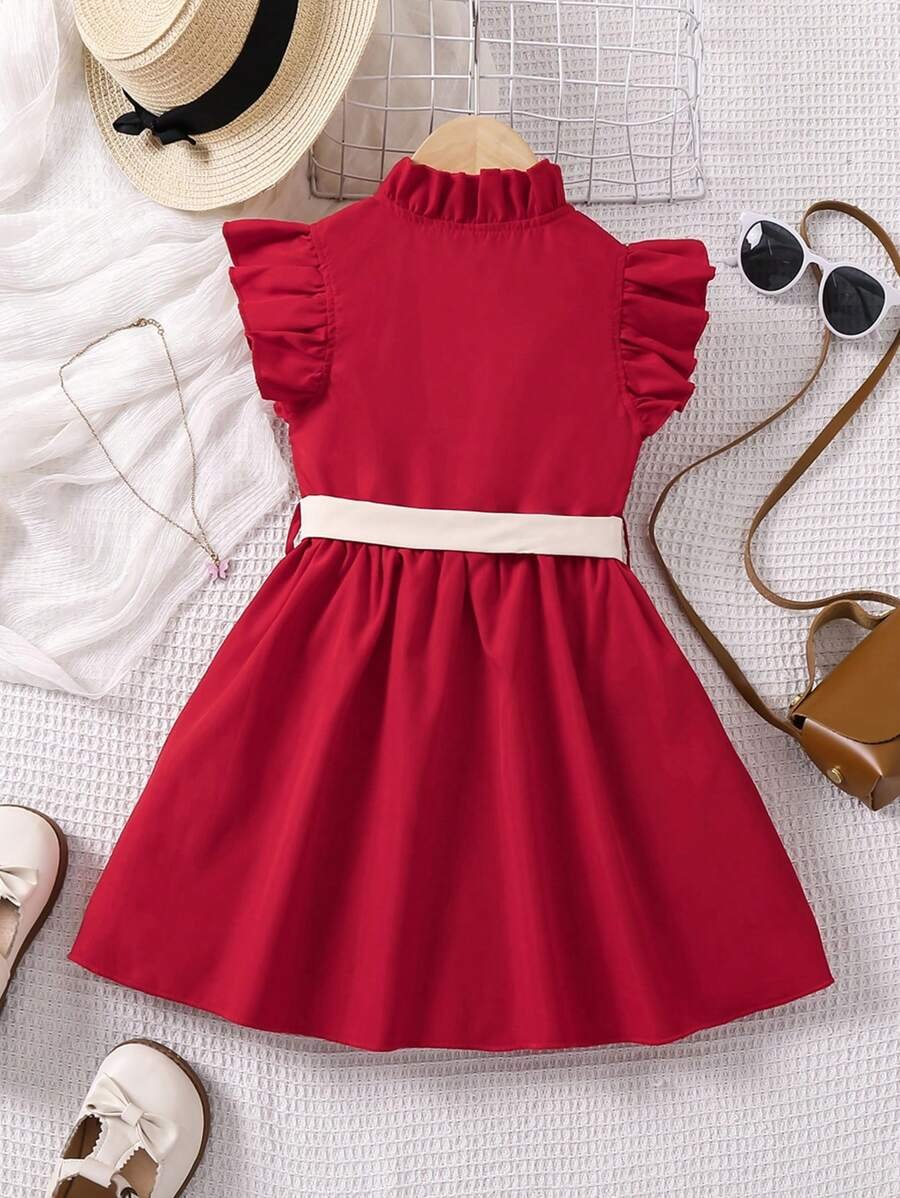 Falda en mezclilla de rayas de cintura con volante con cinturón