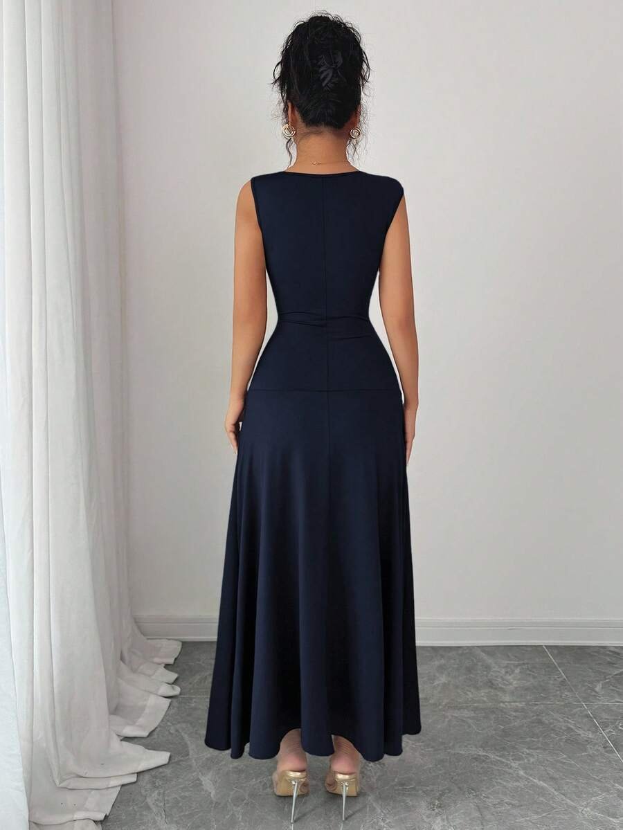 Vestido casual y elegante con cuello asimétrico y cintura fruncida
