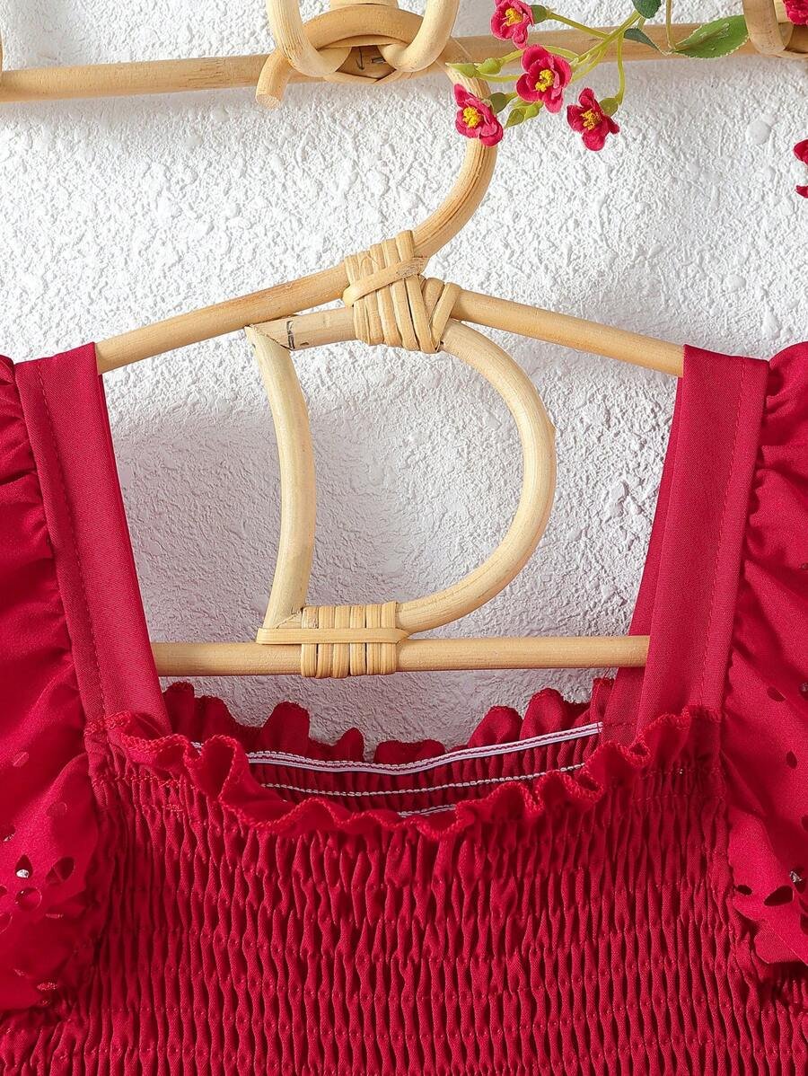 Vestido con abertura láser ribete con fruncido bajo a capas