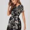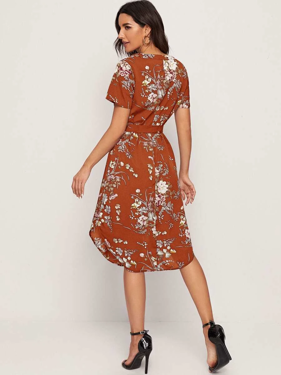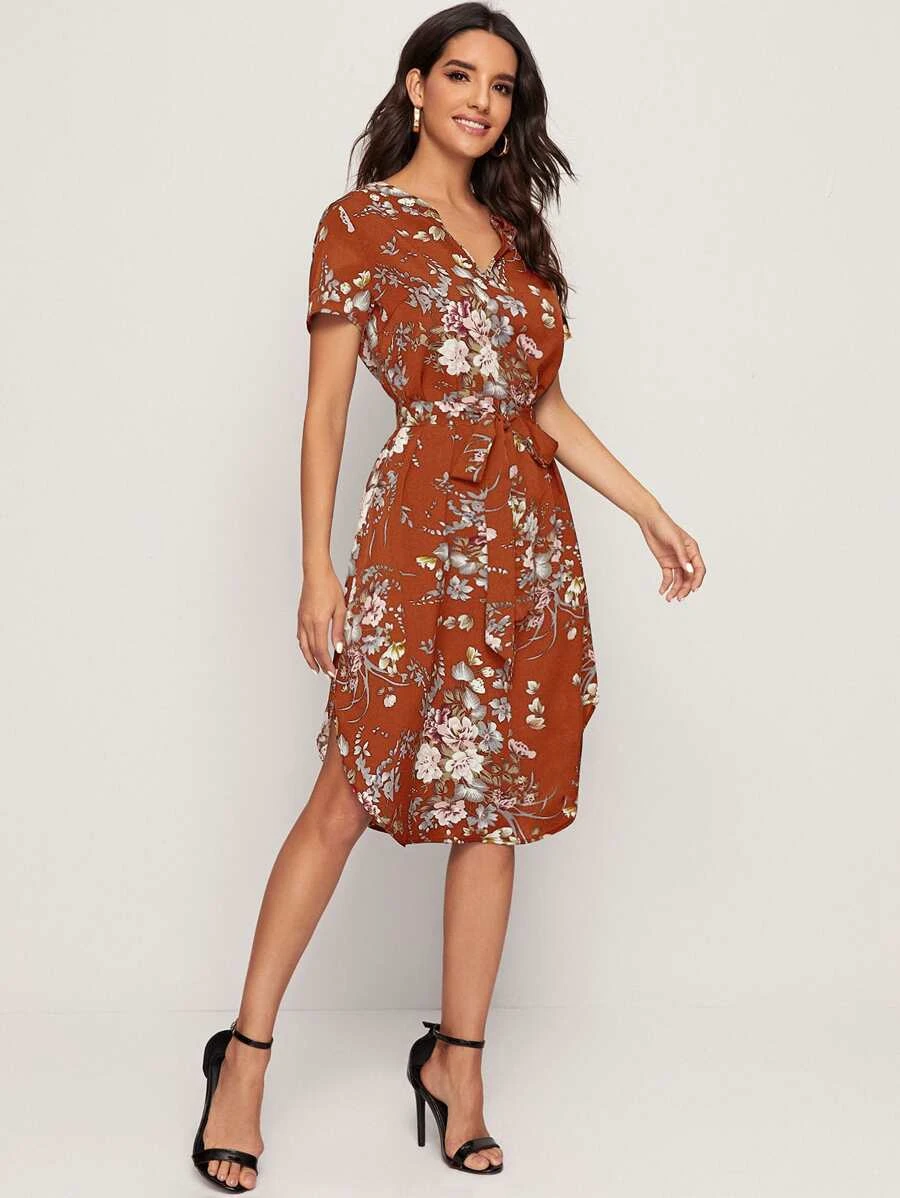 Vestido con cinturón bajo curvo con abertura de cuello notch