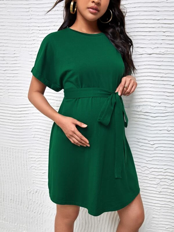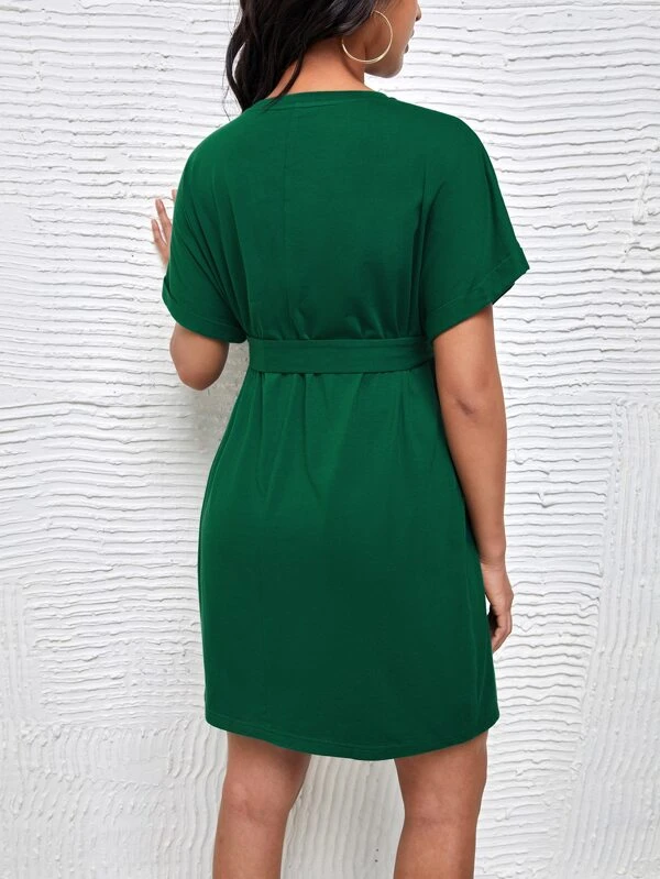 Vestido con cinturón de manga enrollada