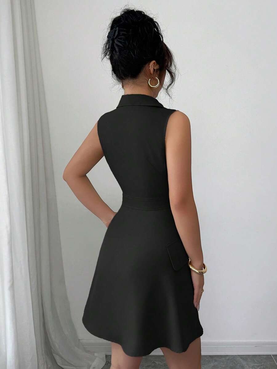 Vestido con cuello de camisa y doble botonadura en la cintura
