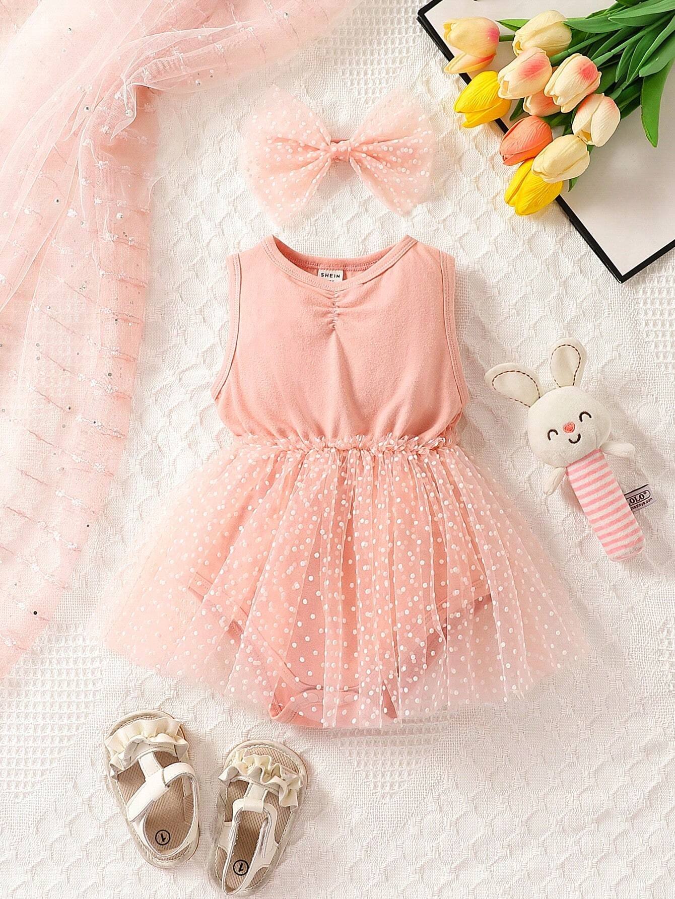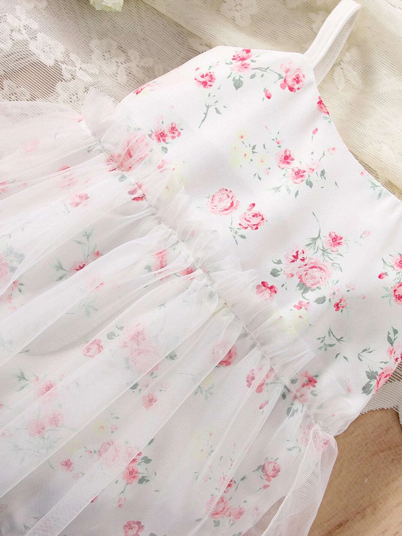 Vestido Con Estampado Floral En Malla Para Bebé Niña