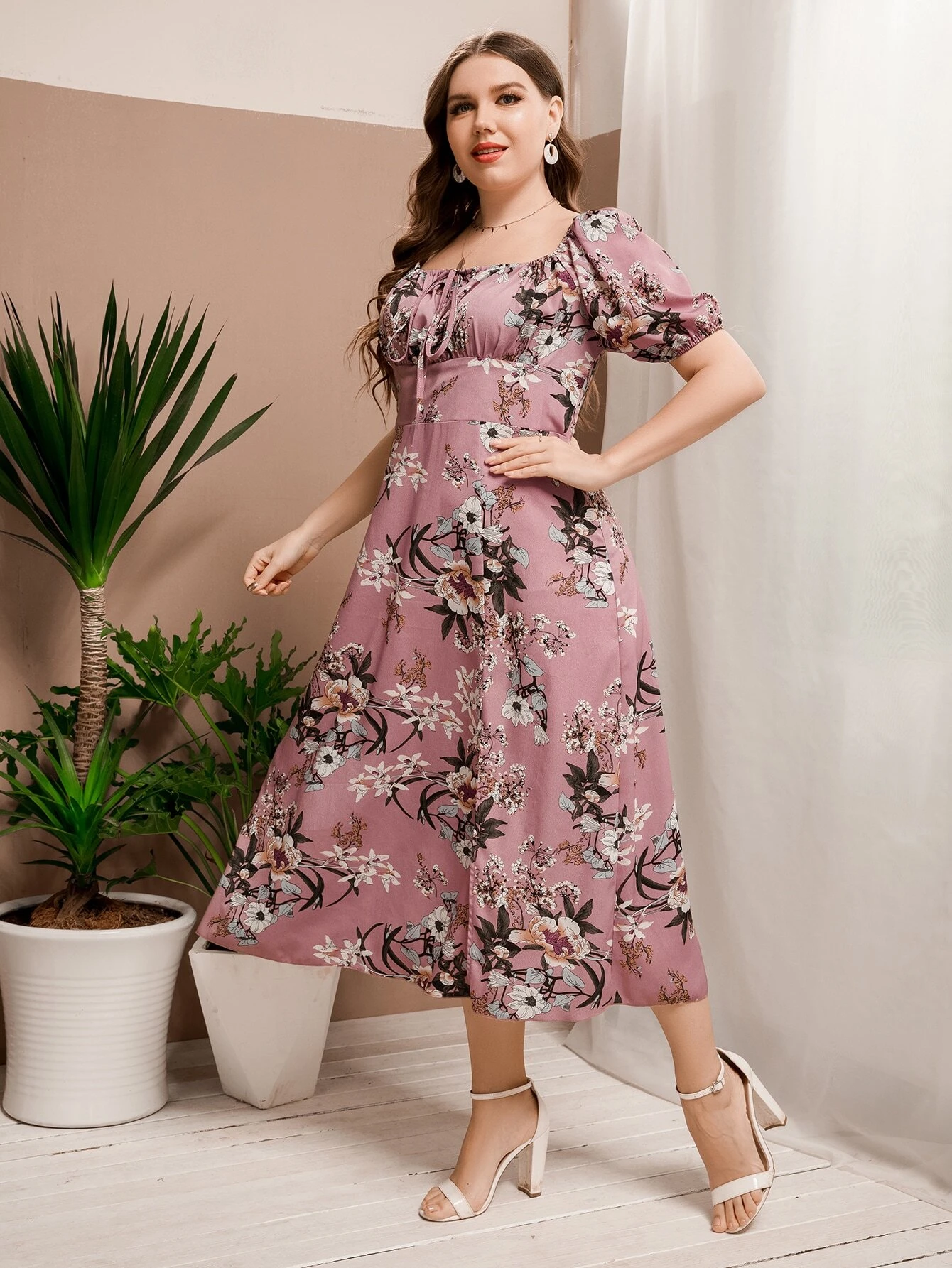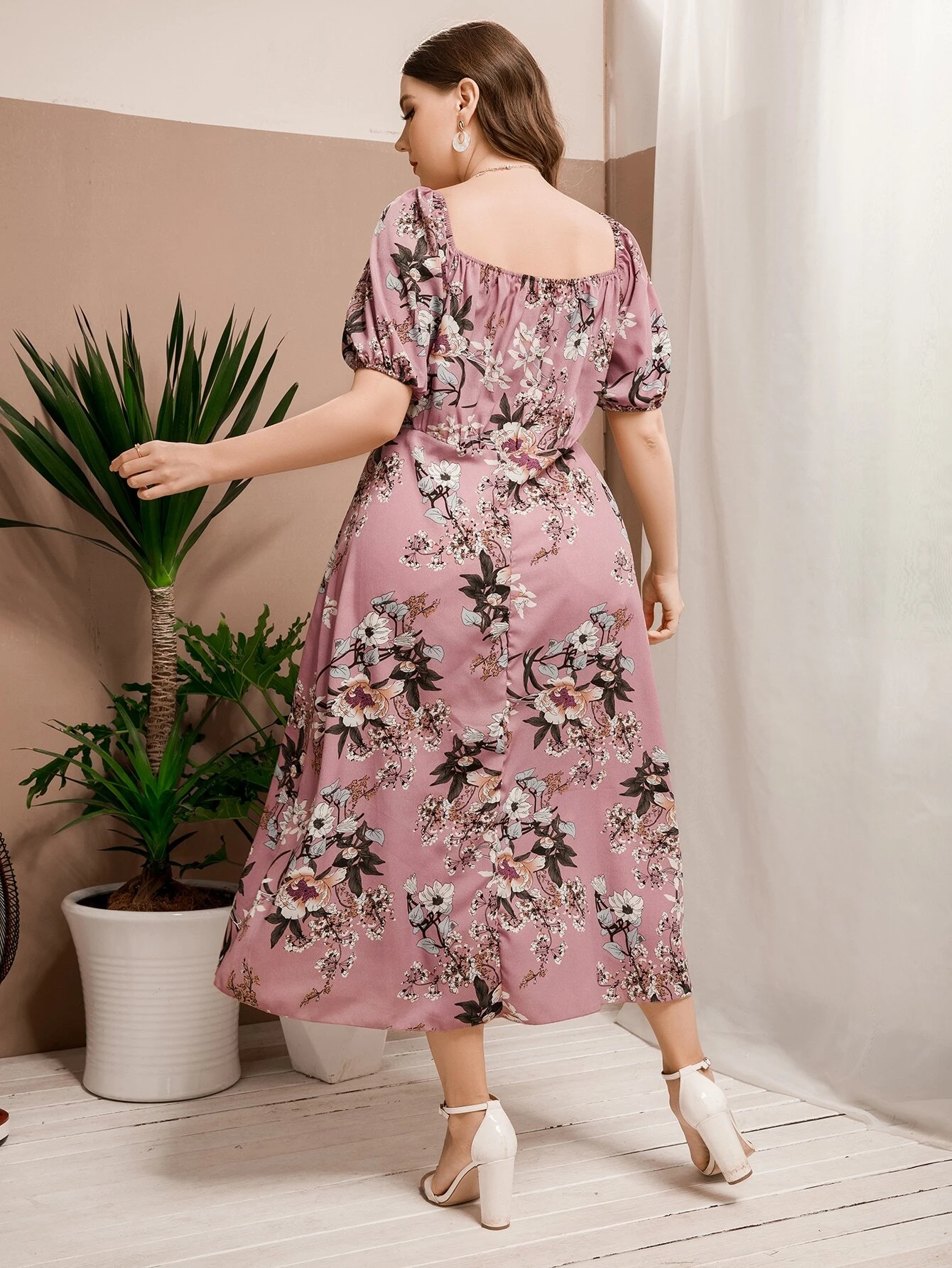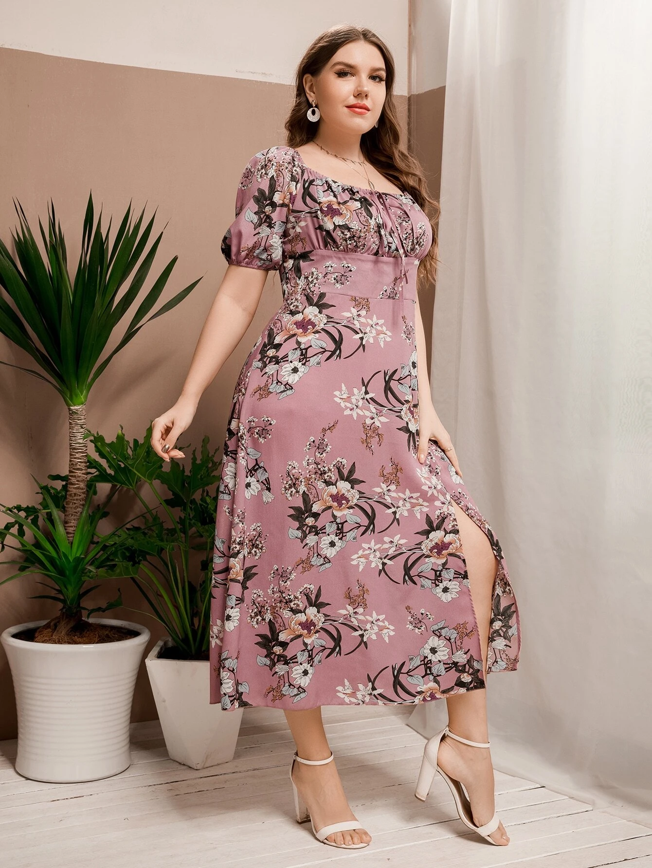 Vestido con estampado floral pecho con fruncido de muslo con abertura