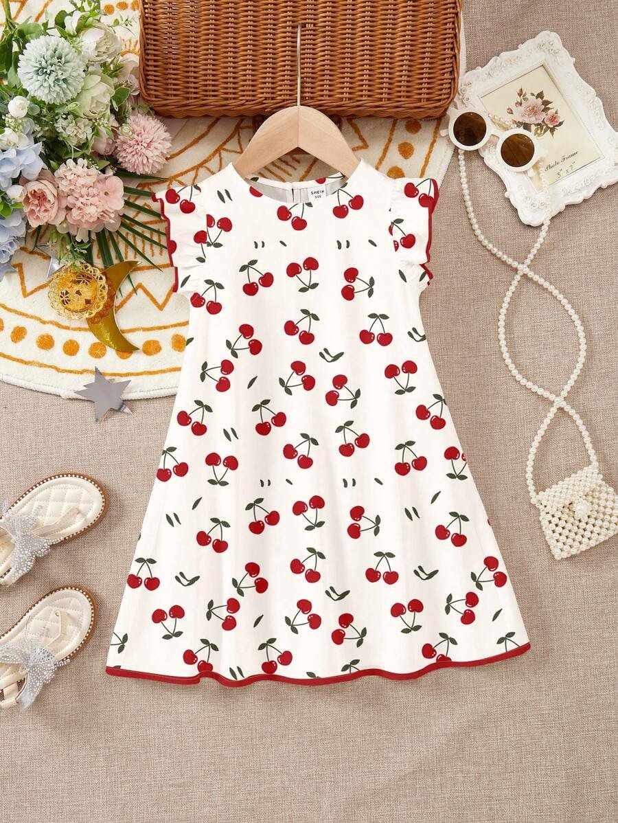 Vestido con volantes en el dobladillo y estampados