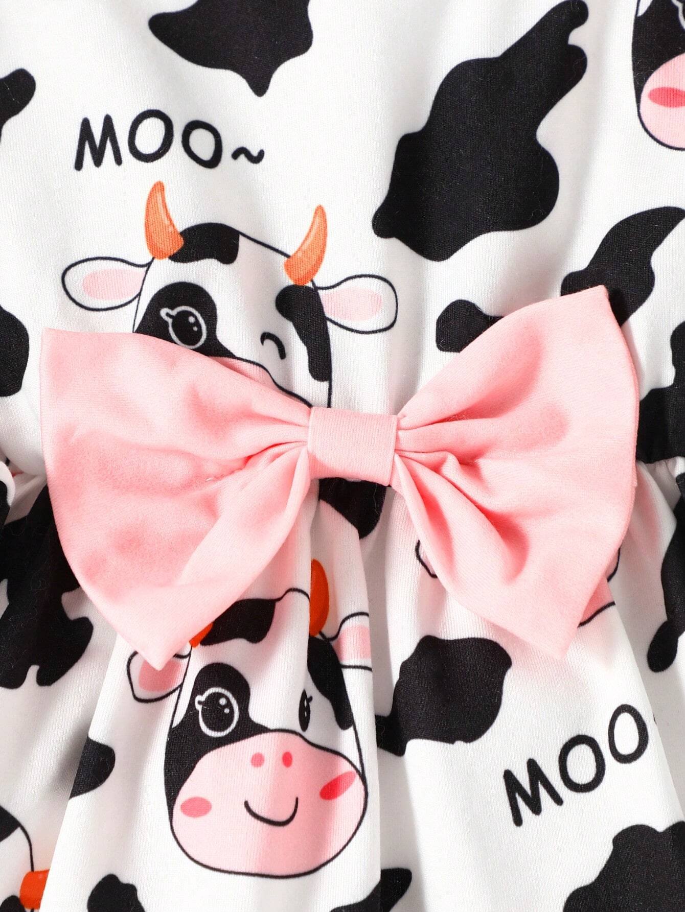 Vestido Con Volantes Y Lazo Delantero Con Diseño De Vaca Y Letras