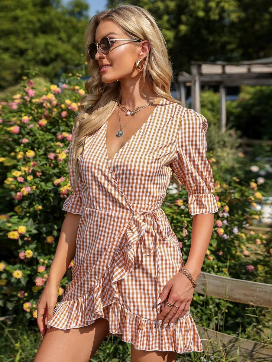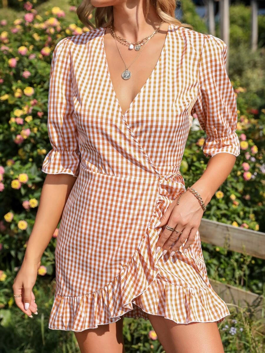 Producto anterior Siguiente producto Vestido cruzado con estampado de guingán de manga farol ribete con fruncido SKU: sw2111208944944499 Categoría: Vestidos Este producto no está disponible porque no quedan existencias. Descripción Descripción