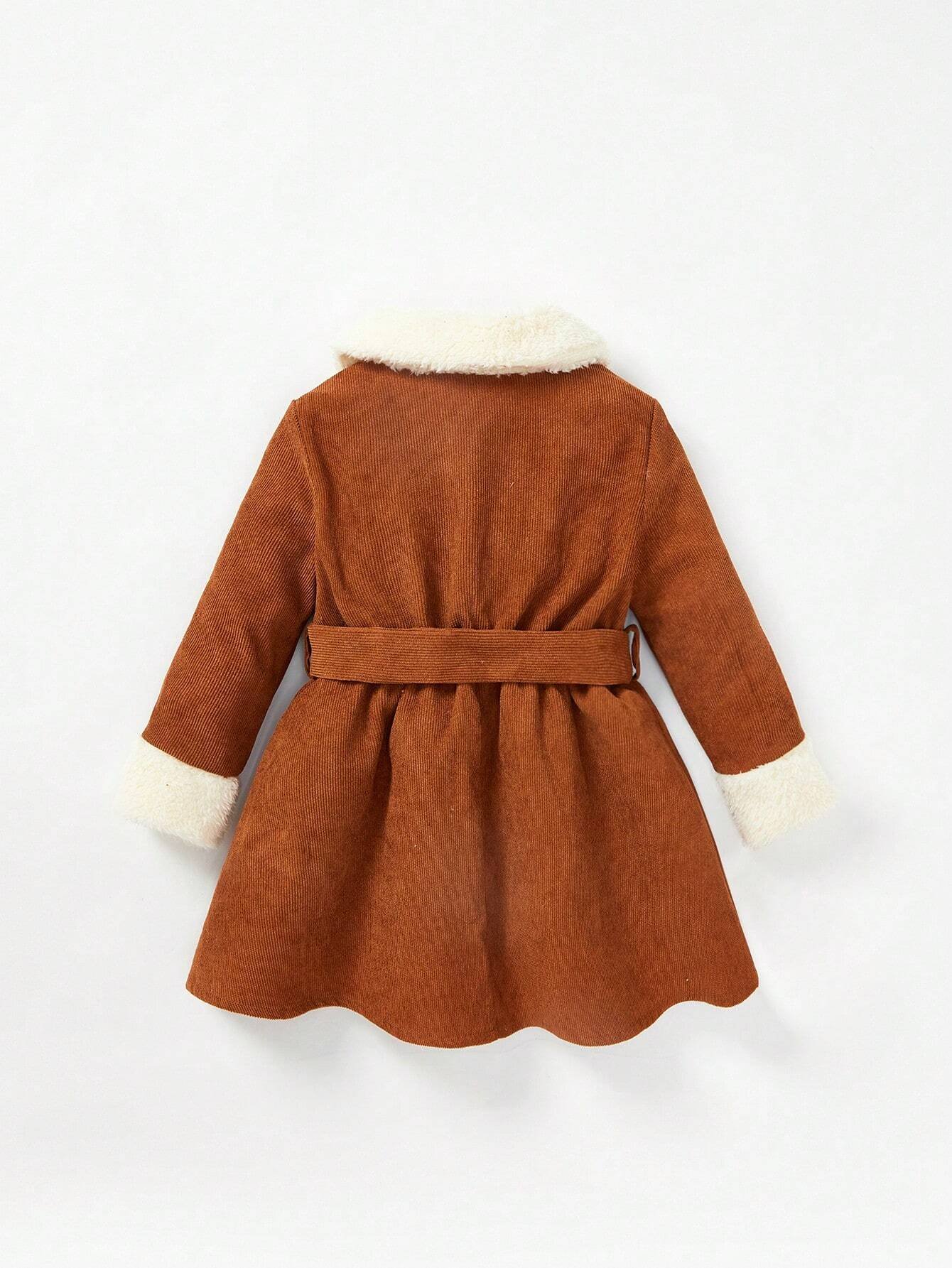 Vestido cuello de borreguito con diseño de solapa con cinturón de pana & Sombrero