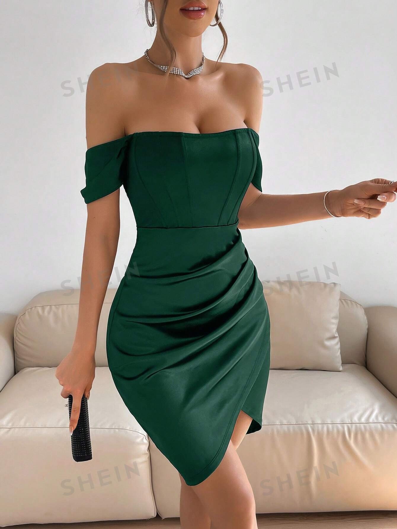 Vestido de cóctel de satén con abertura en el muslo para fiestas