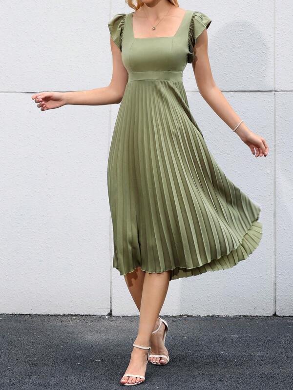 Vestido de cuello cuadrado ribete con fruncido bajo fruncido