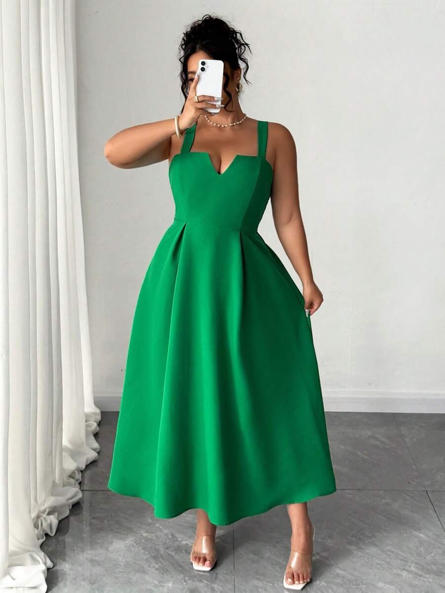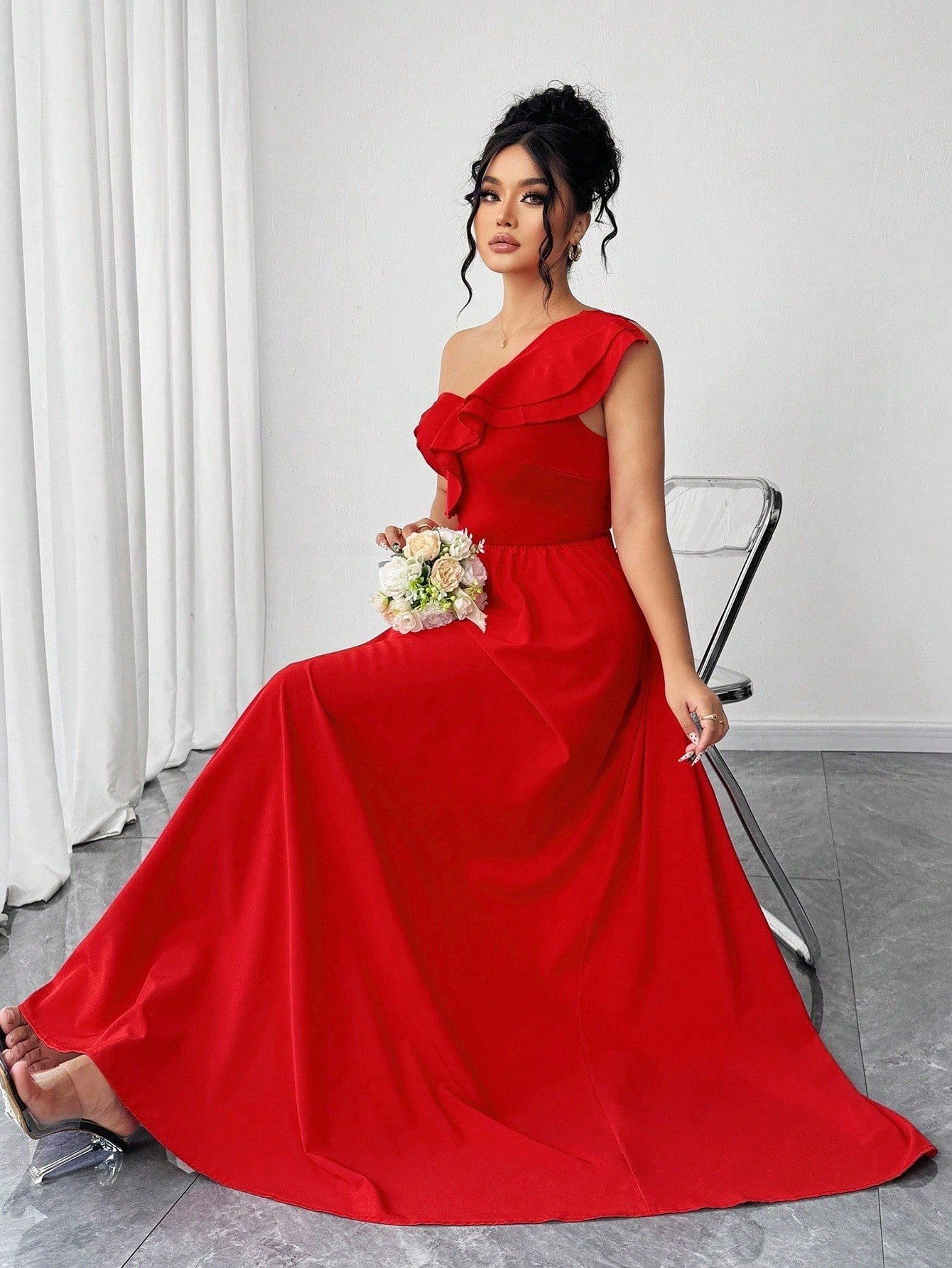 Vestido de fiesta de unicolor con tirantes de espagueti y volantes