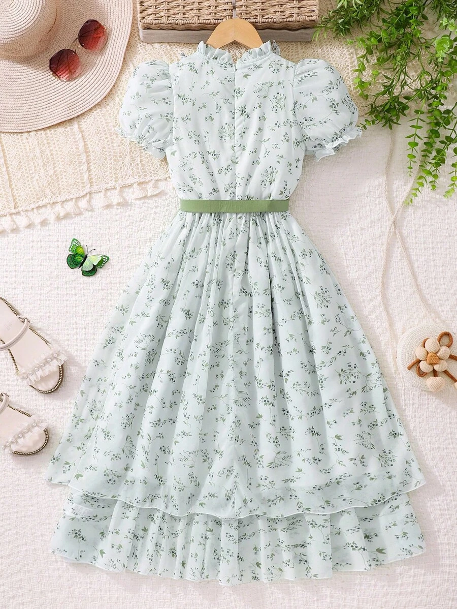 Vestido de flores de gasa de manga abullonada elegante