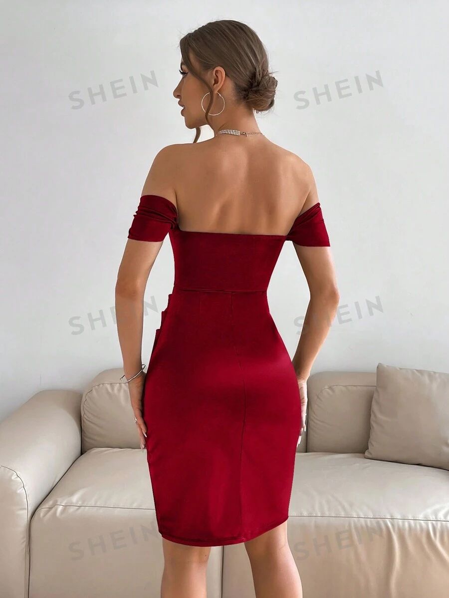 Vestido de hombros descubiertos fruncido bajo tulipán
