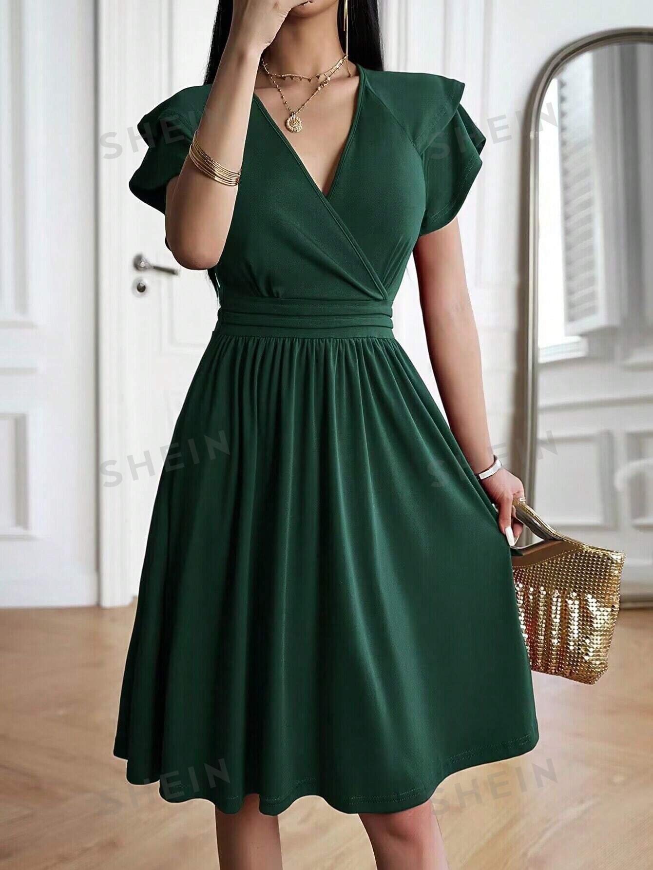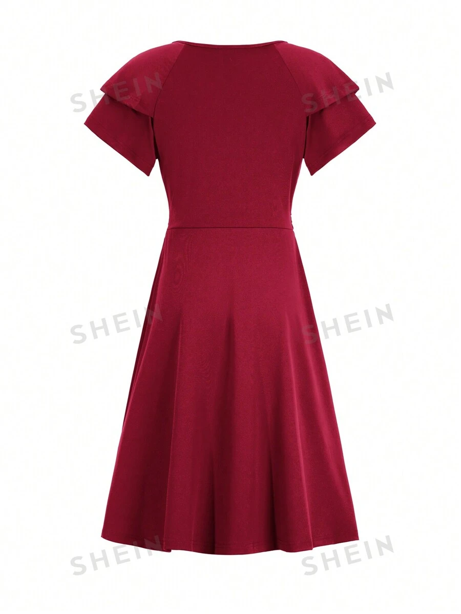 Vestido de línea A con cuello cruzado y mangas de mariposa en color borgoña