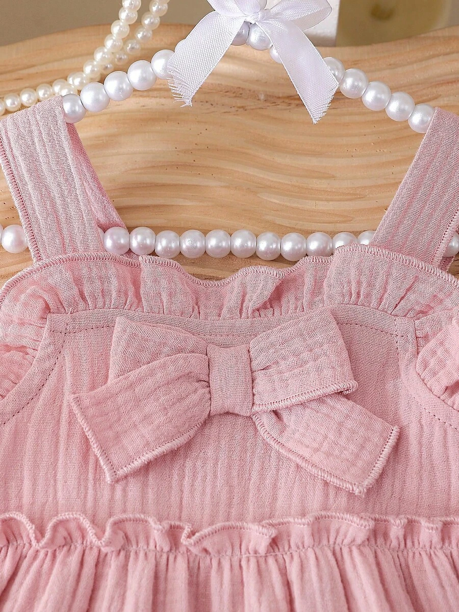 Vestido de línea A con volantes y lazo de tirantes finos