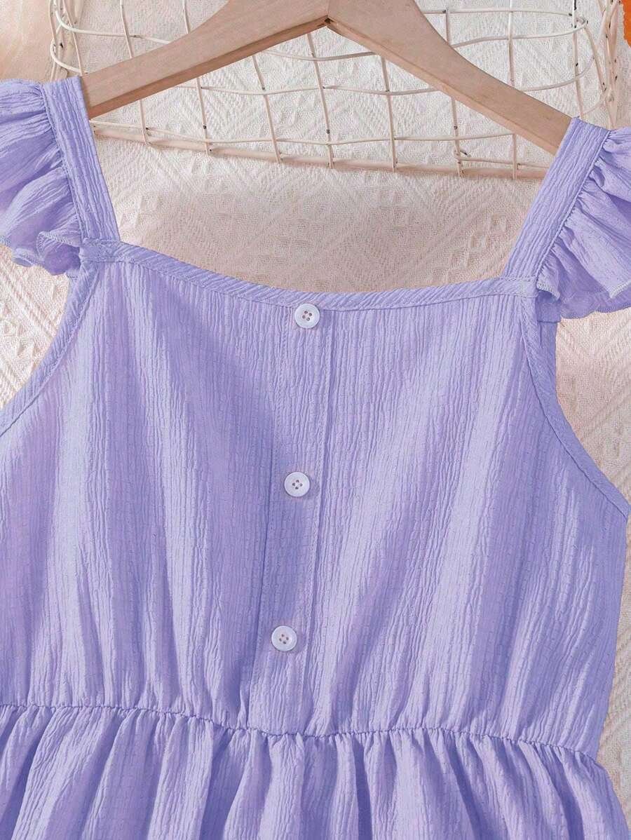 Vestido de línea A para niña preadolescente con mangas cap y cuello cuadrado