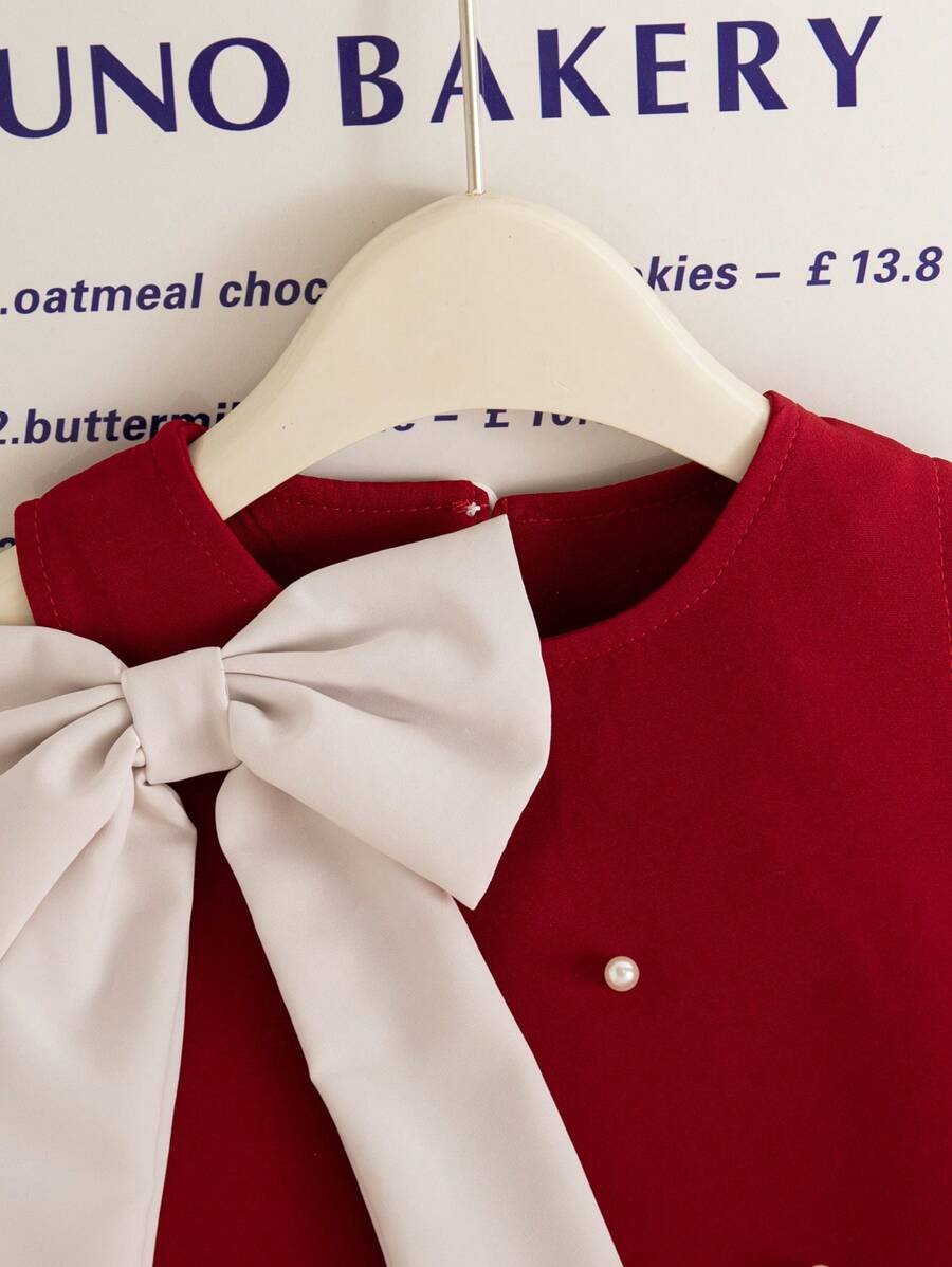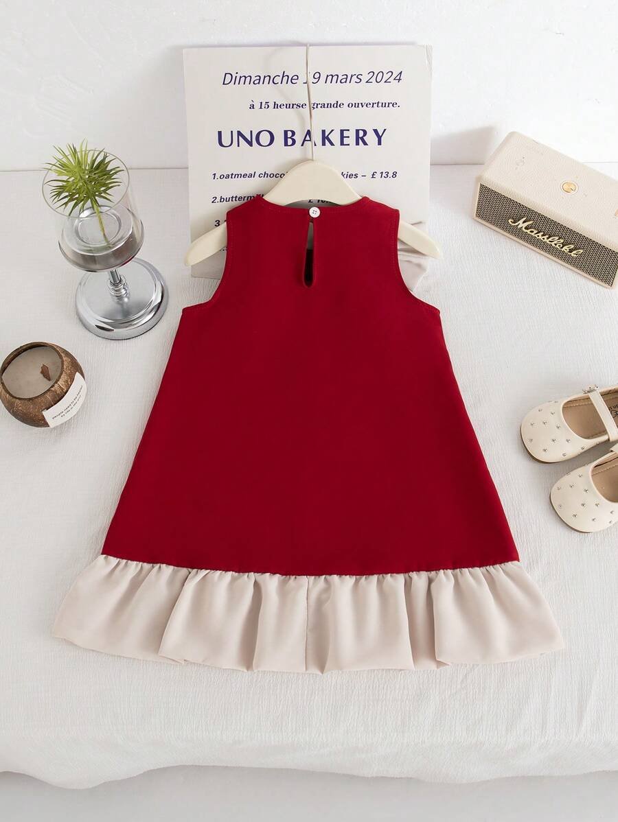 Vestido de línea A sin mangas con volantes y lazo de perlas