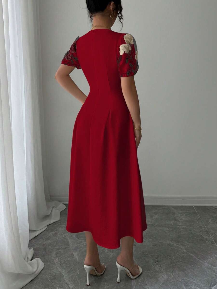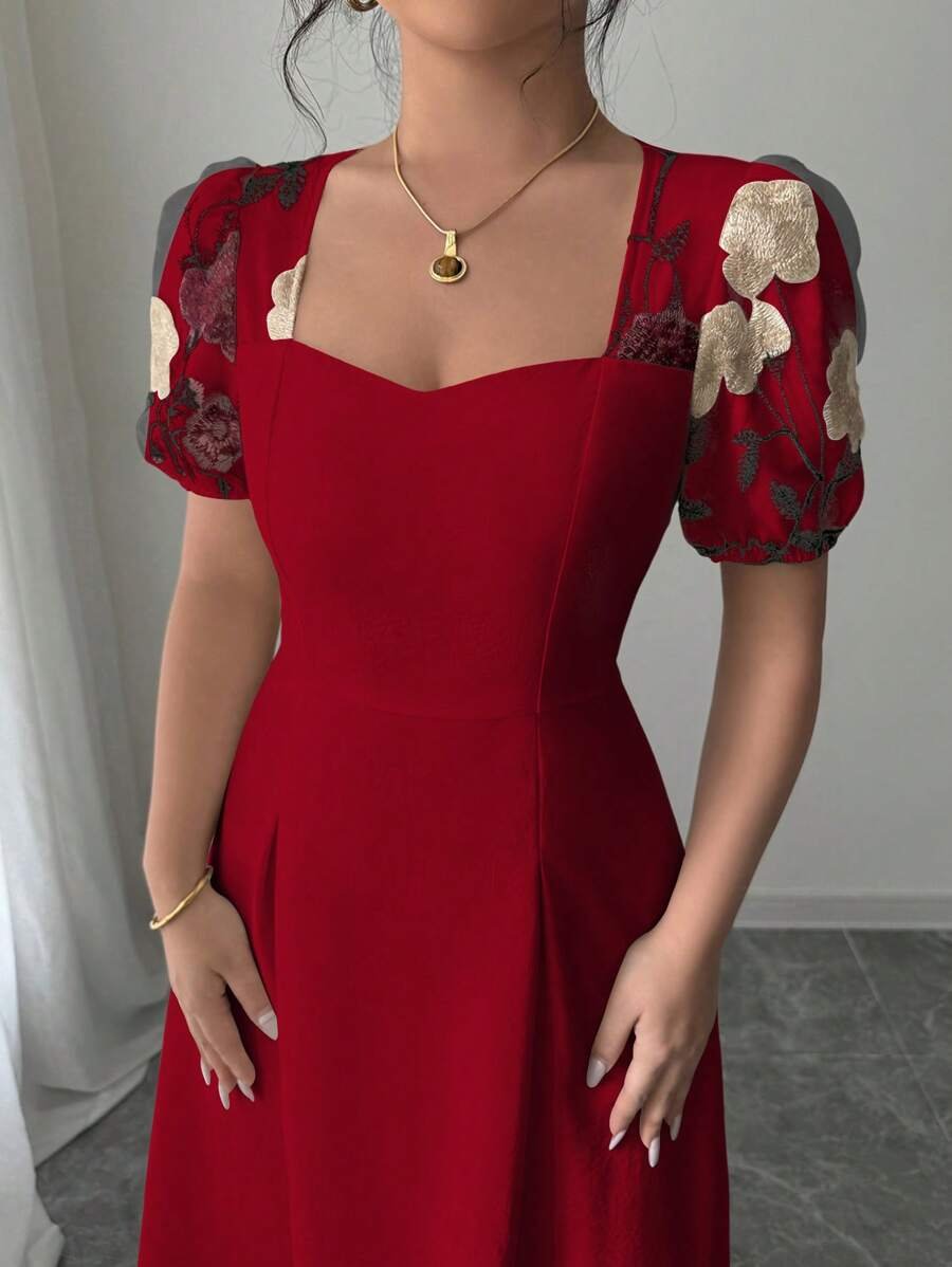 Vestido de mujer con cuello cuadrado y manga abullonada