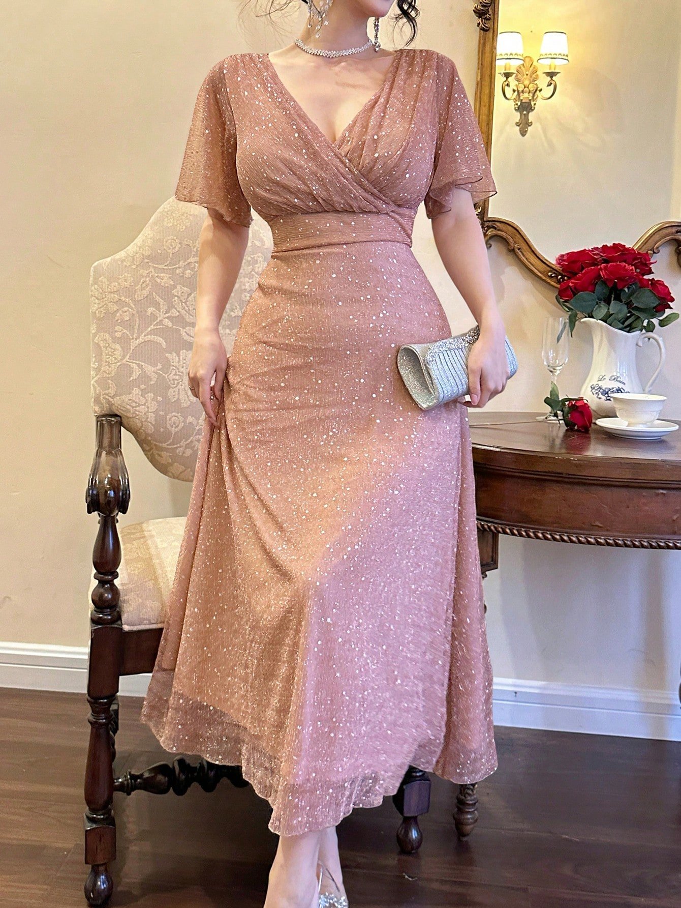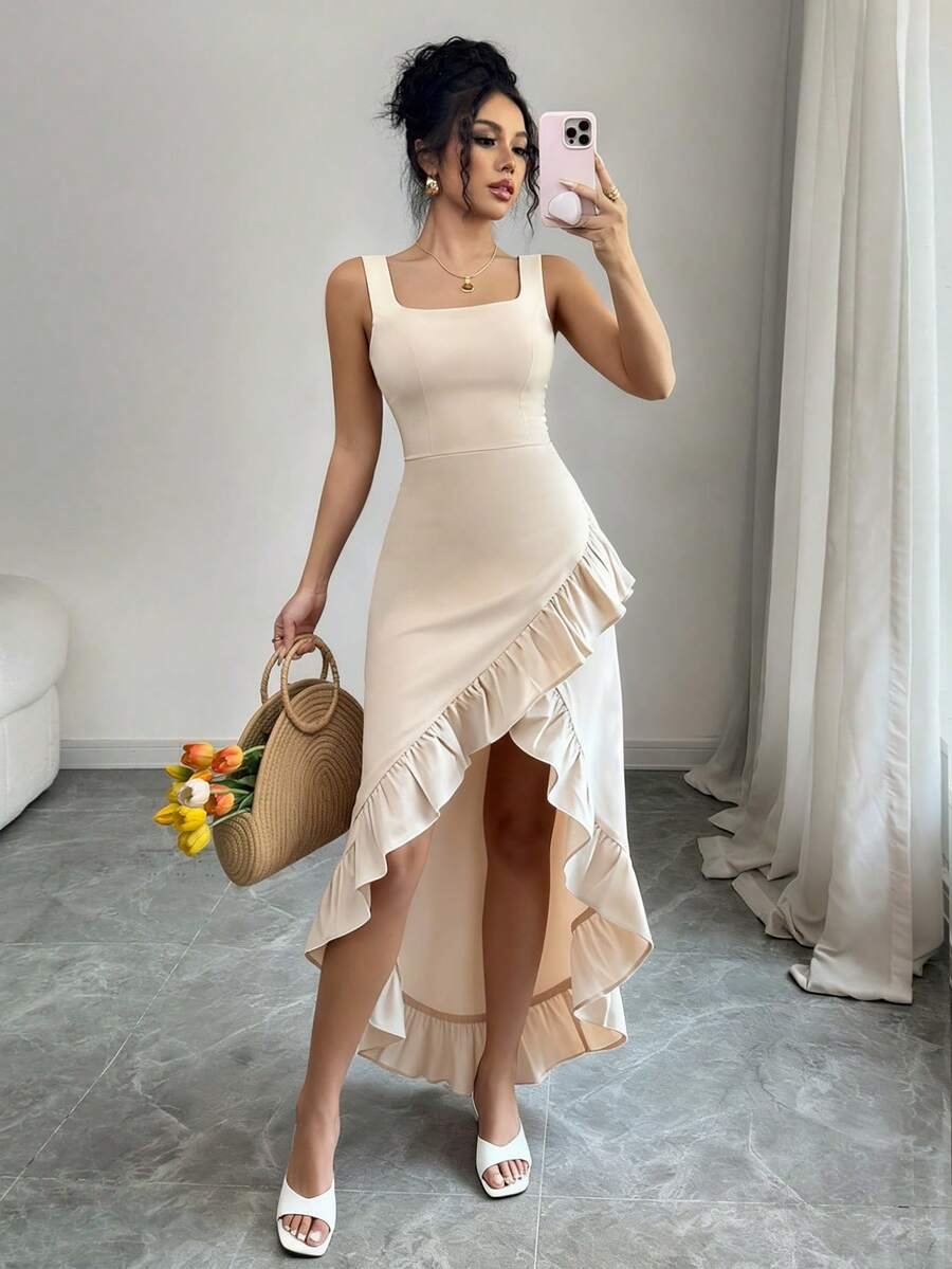 Vestido ajustado de malla con tira cruzada de cuello halter