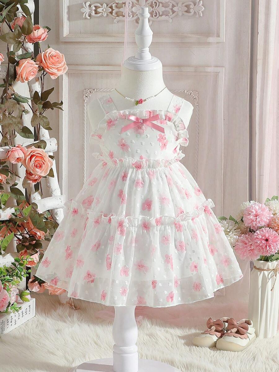 Vestido De Niña Bebé Con Mangas De Mariposa, Con Estampado Floral