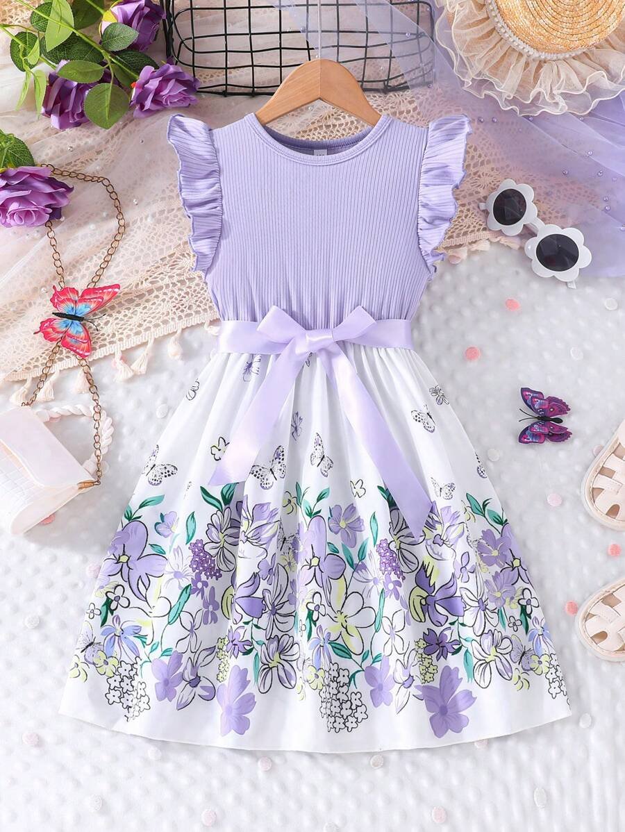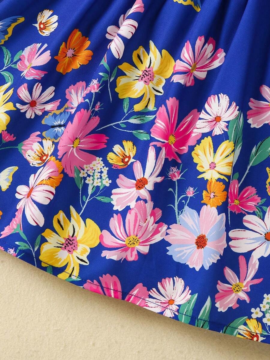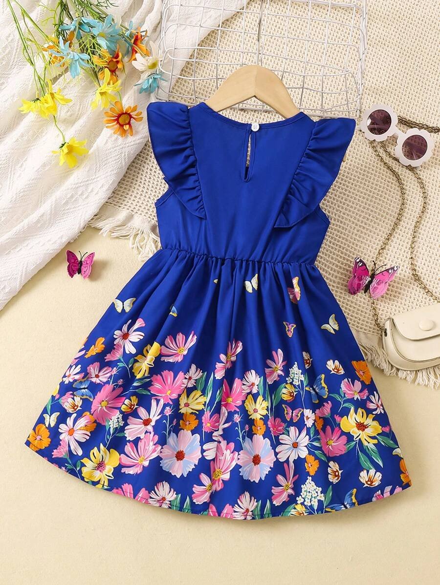 Vestido De Niña Con Estampado Floral Y Dobladillo Con Volantes