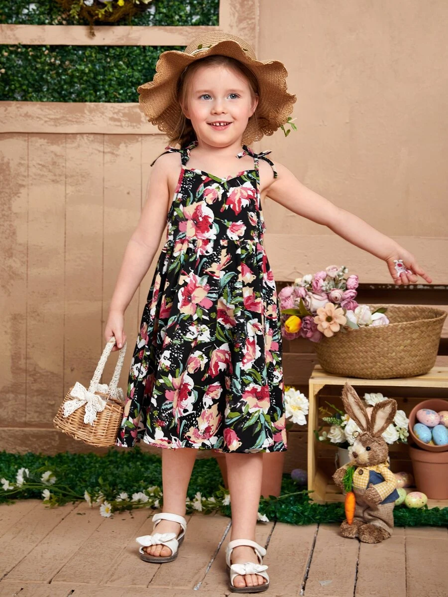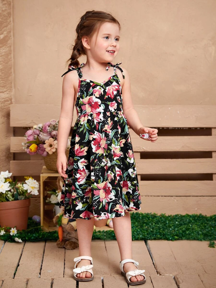 Vestido de tirantes con estampado floral de hombros con cordón