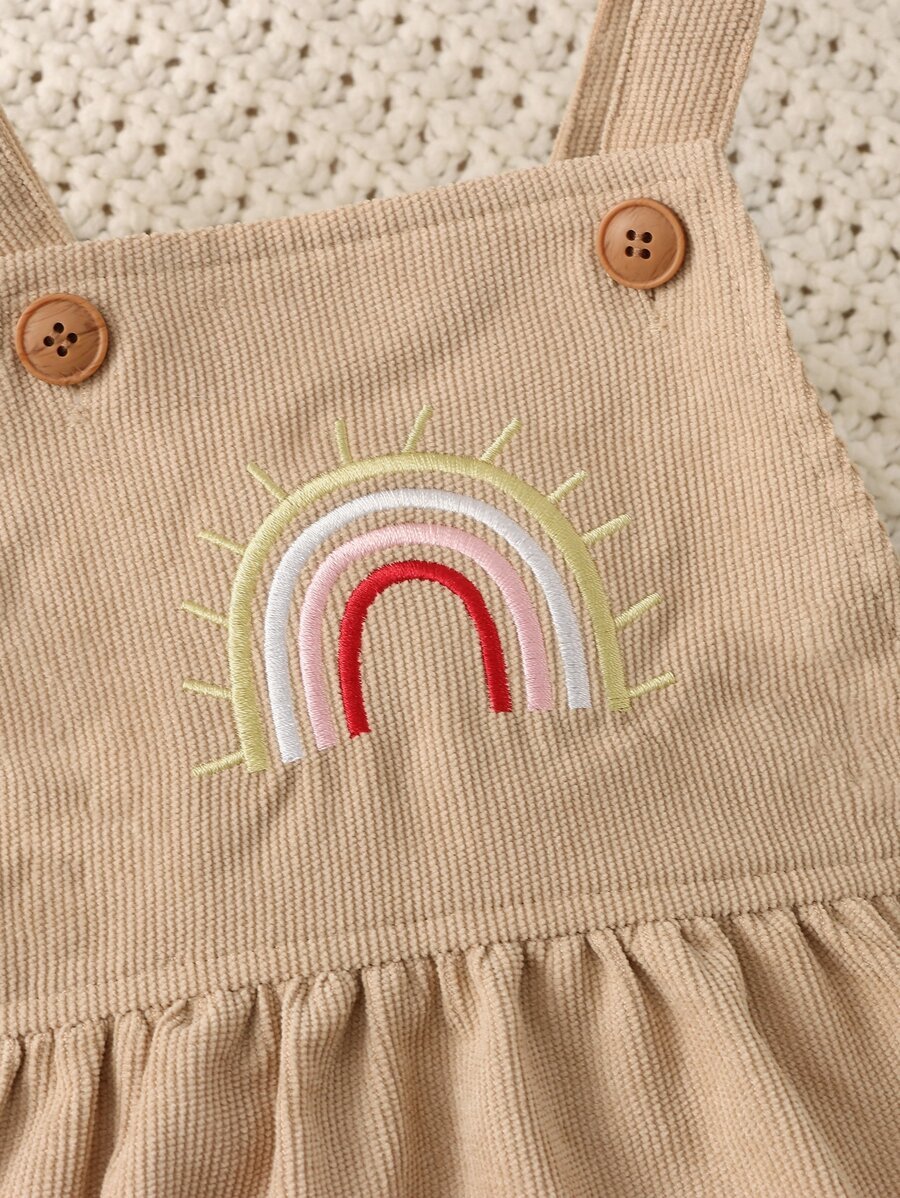 Vestido De Tirantes De Pana Con Bordado De Arcoiris Y Dobladillo