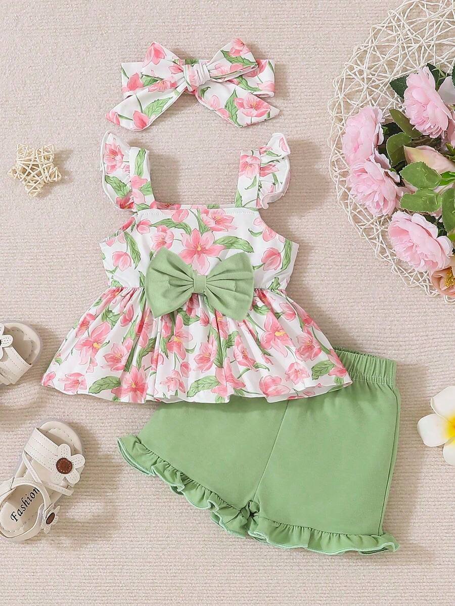 Conjunto Simple De Color Sólido Y Pantalones Acampanados Con Flores