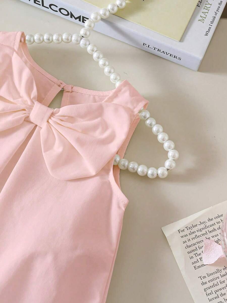 Vestido de tutú plisado elegante sin mangas con decoración de lazo