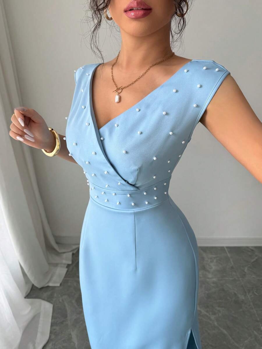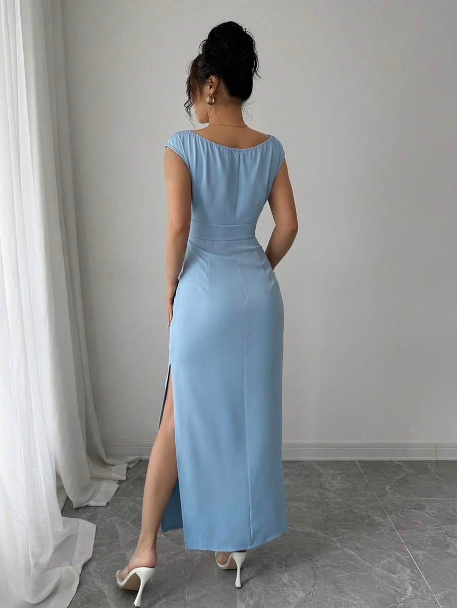 Vestido ajustado de malla con tira cruzada de cuello halter