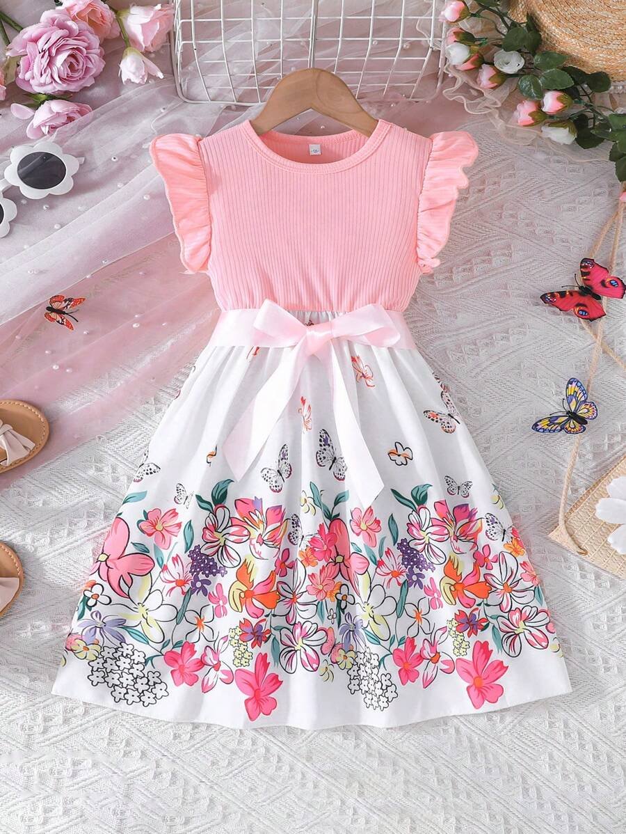 Vestido de verano elegante para niña joven, con cuello redondo y mangas cortas