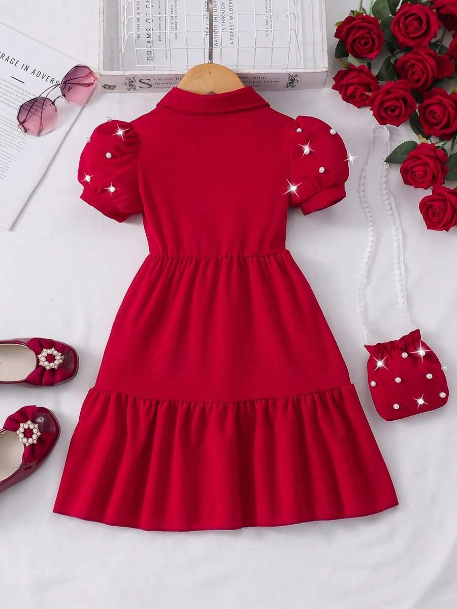 Vestido de verano lindo con apertura frontal y manga abullonada
