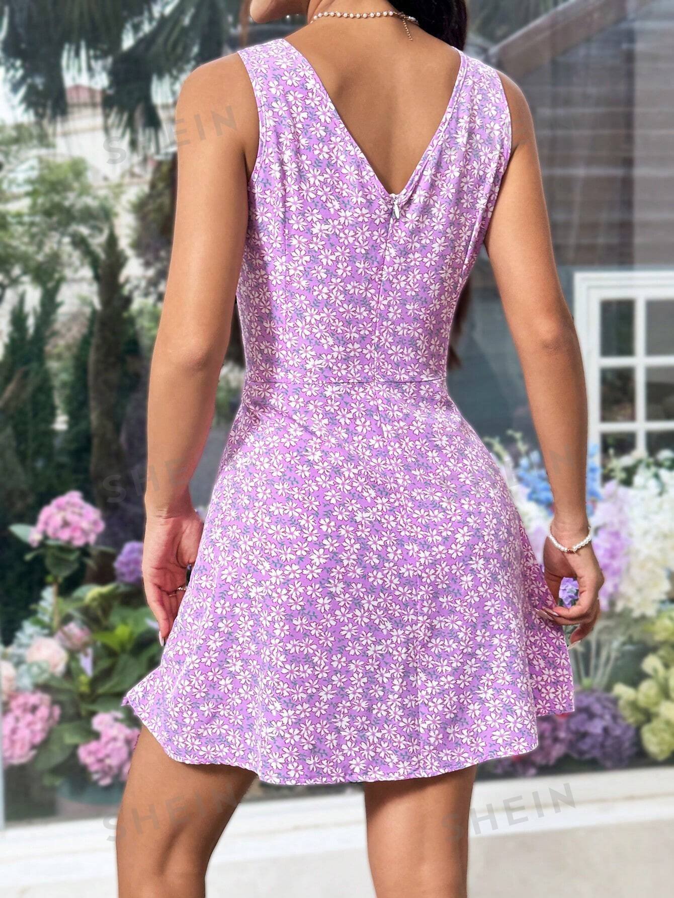 Vestido diario elegante sin mangas con flores pequeñas y simples