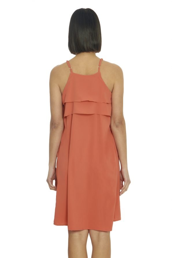 Vestido halter con detalle de doble olan en escote