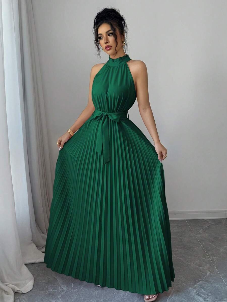 Vestido ajustado de malla con tira cruzada de cuello halter