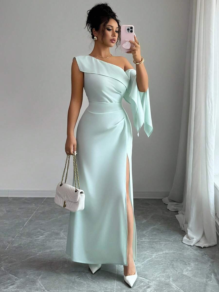 Vestido elegante y casual con cuello oblicuo