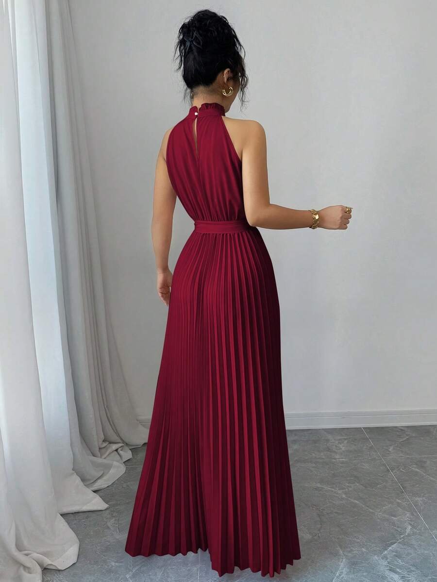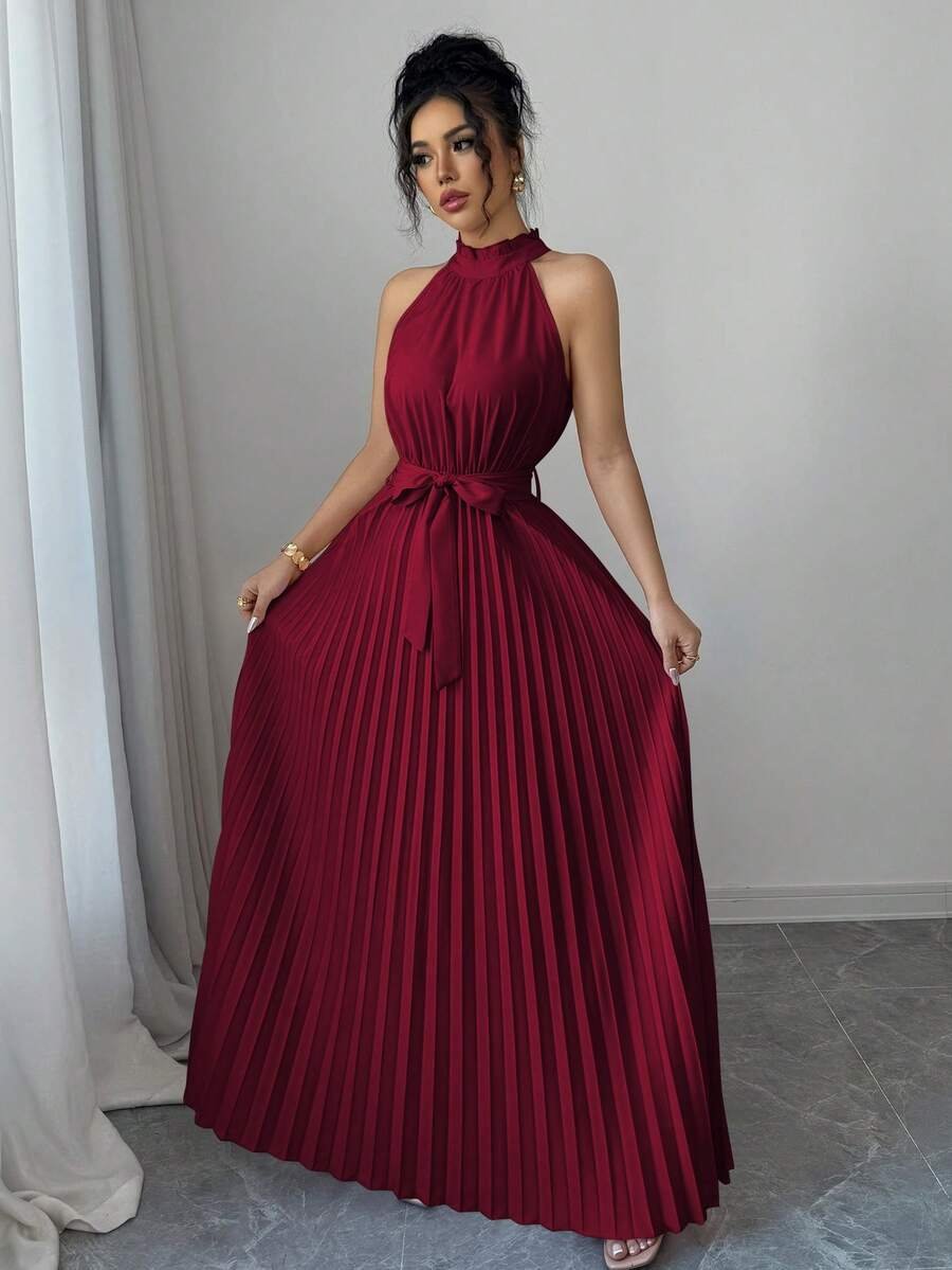 Vestido ajustado de malla con tira cruzada de cuello halter