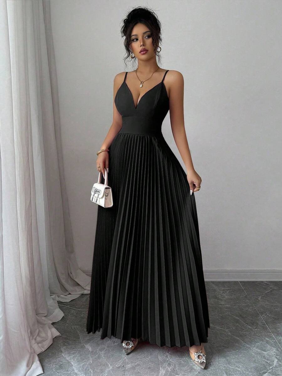 Vestido de terciopelo ajustado con tirantes de cadena