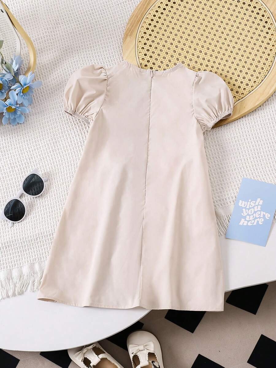 Vestido holgado casual de cuello redondo con mangas abullonadas