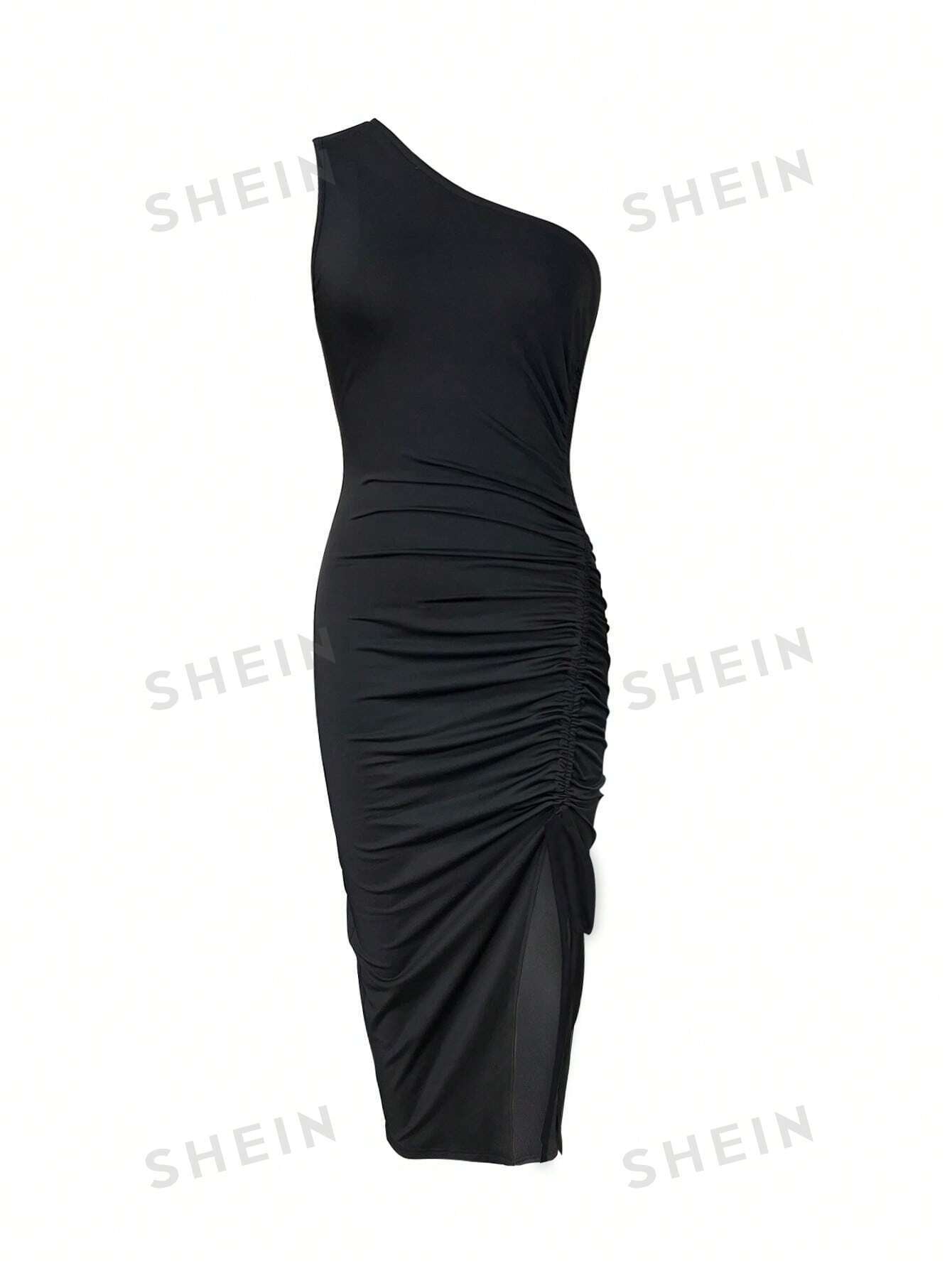 Vestido largo con escote asimétrico sexy y abertura alta en una pierna