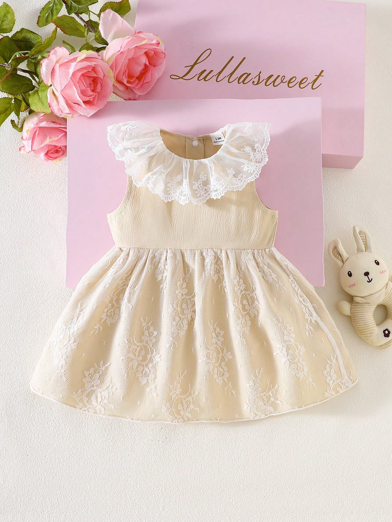 Bebé Vestido con estampado de letra ribete en forma de lechuga