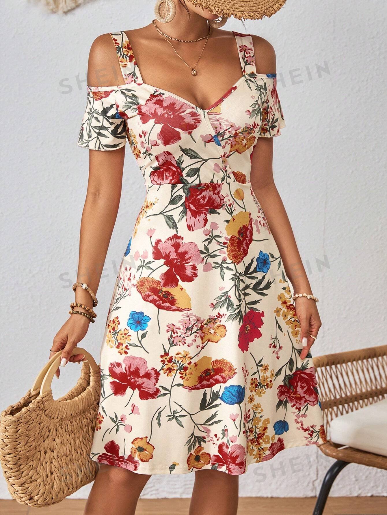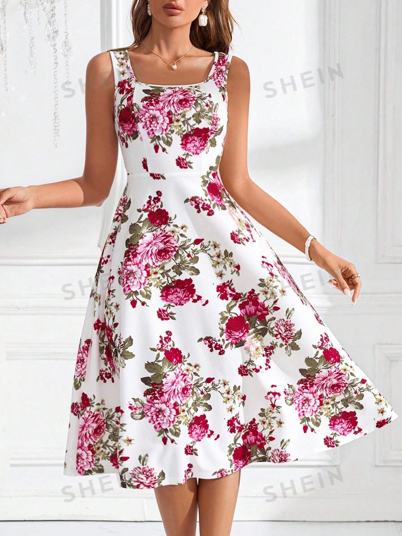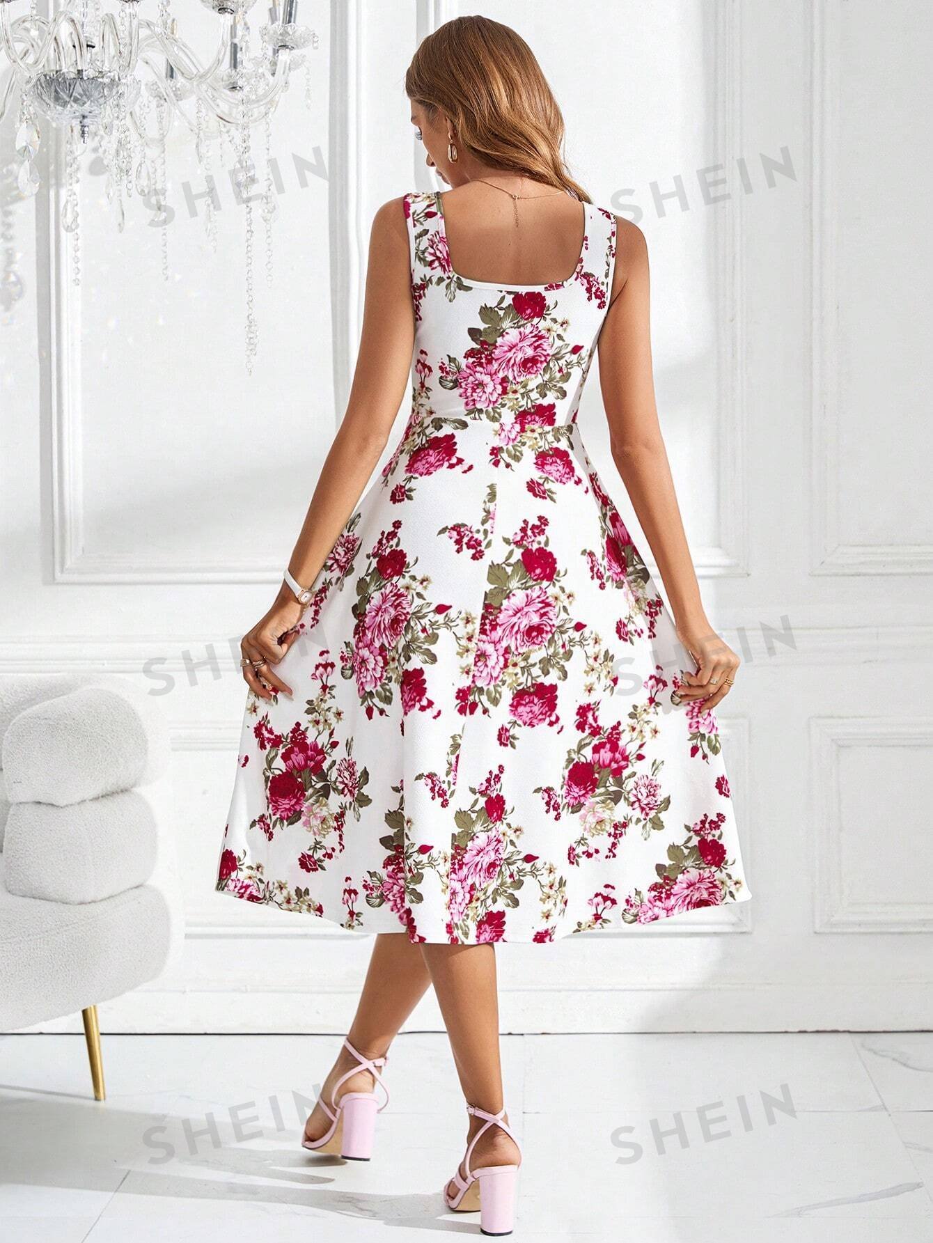 Vestido maxi sin mangas con cuello cuadrado y estampado floral